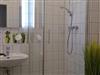 Das geflieste Badezimmer mit Dusche, WC, Waschtisch und Fön wird auch vom Fußboden aus beheizt.