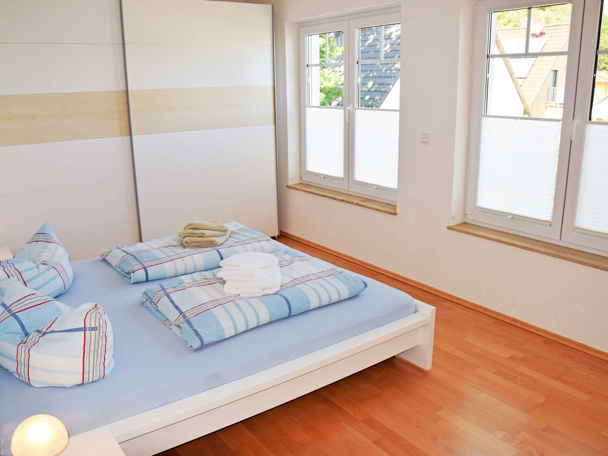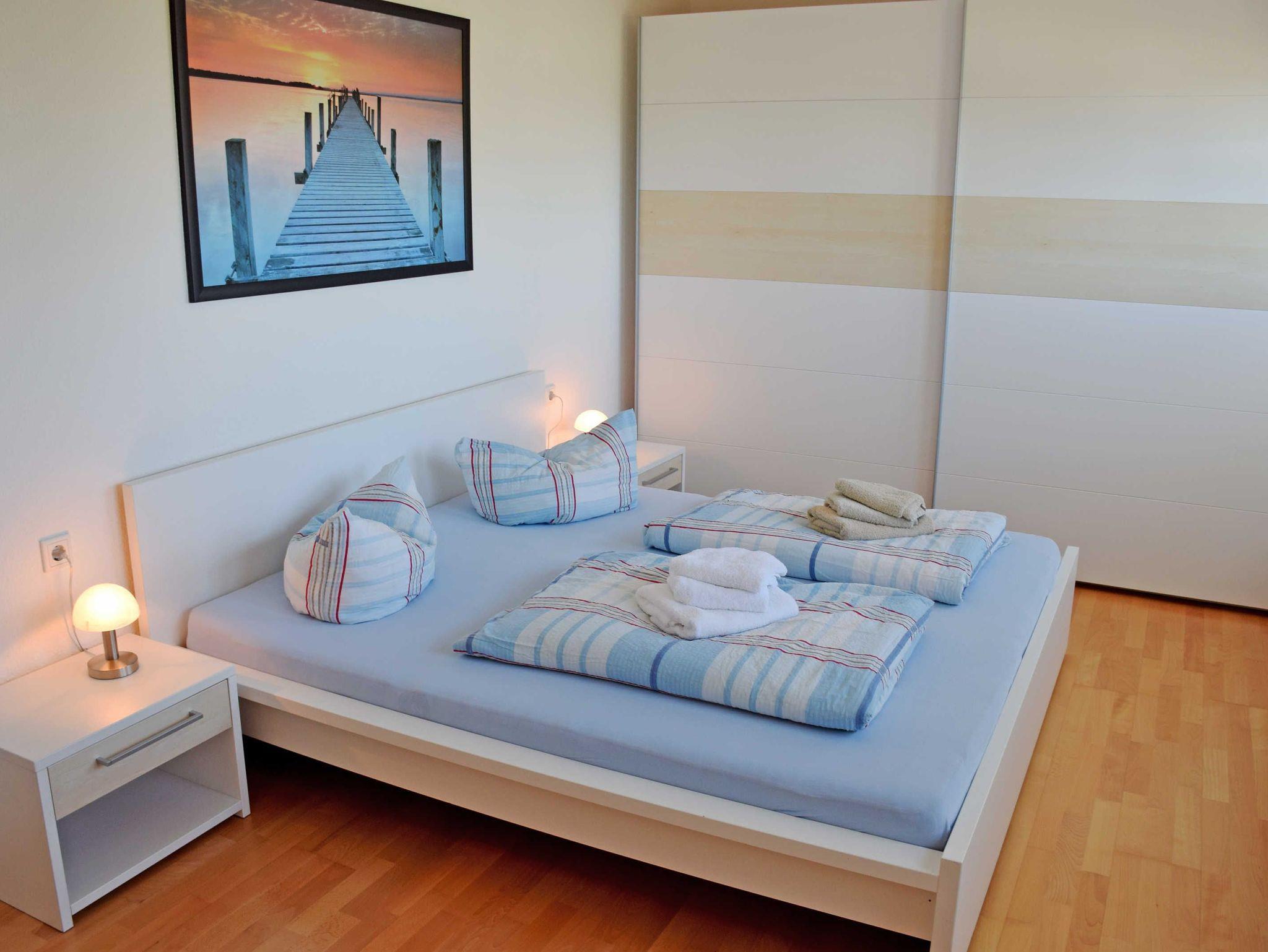 Die großzügige Nichtraucher-Ferienwohnung (80 qm, 1 Wohnzimmer mit Küchenzeile, 2 Schlafzimmer, Bad mit Dusche und WC, Balkon, max. 2 - 4 erwachsene Gäste (ein Kind im Kinderreisebett ist möglich), ist modern und komfortabel eingerichtet.