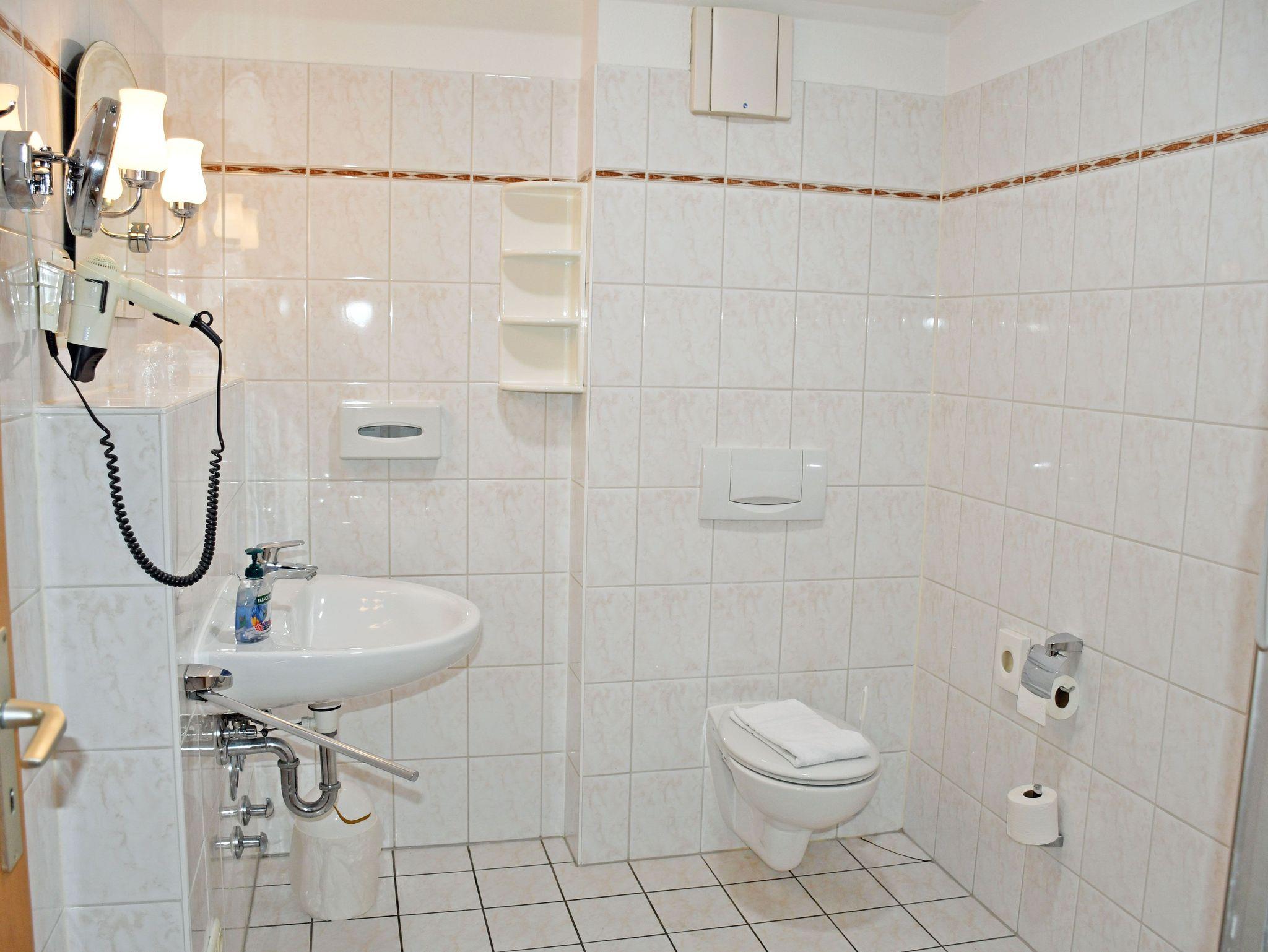 Bad mit Dusche, WC und Föhn