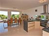Ein großzügiger Essplatz aus massiven Eichenholzmöbeln und die offene Küche, die unter anderem mit einer Arbeitsplatte aus Granit, Bar-Tresen, Cerankochfeld, Backofen, Mikrowelle, Spülmaschine, Kaffeevollautomat, Wasserkocher und Toaster erstklassig ausgestattet ist, vollenden das Wohlbefinden in unserem Beletage Appartement.