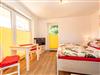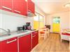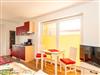 * kombinierter Wohn-/Schlafraum mit kleiner, integrierter Küchenzeile ausgestattet mit: 2-Platten-Ceran-Kochfeld, Dunstabzugshaube, kleiner Kühlschrank mit Gefrierfach, Spüle, Toaster, Kaffeemaschine, Wasserkocher, diverse Küchenutensilien