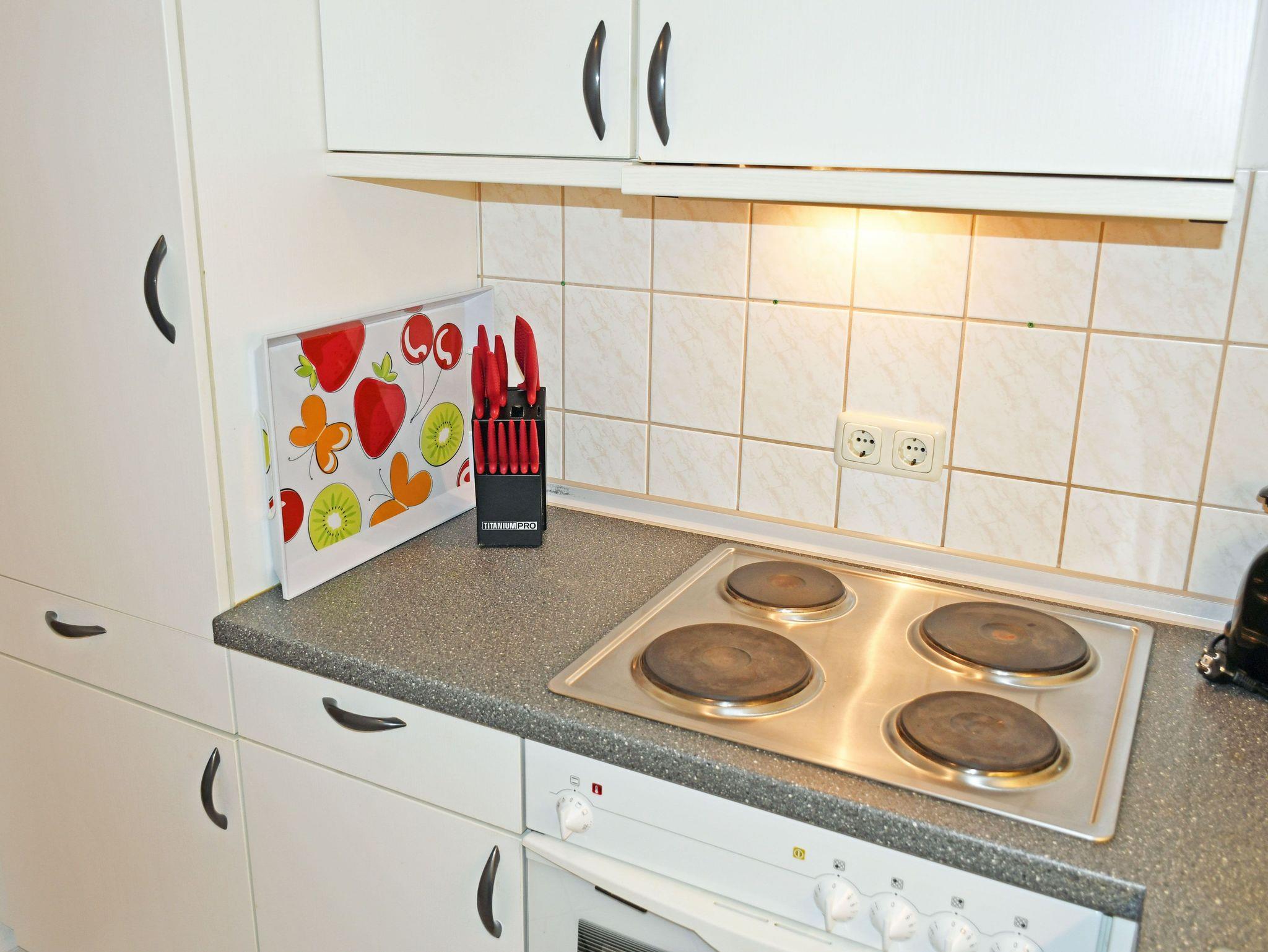 * separate Küche, ausgestattet mit: 4-Platten-Kochfeld, Backofen, Dunstabzugshaube, großer Kühlschrank mit Gefrierfach, Geschirrspüler, Toaster, Kaffeemaschine, Wasserkocher und Küchenutensilien