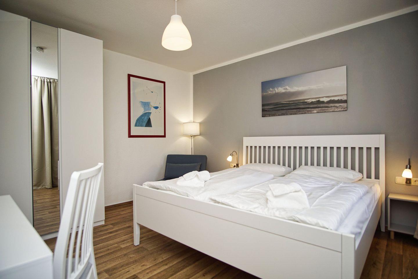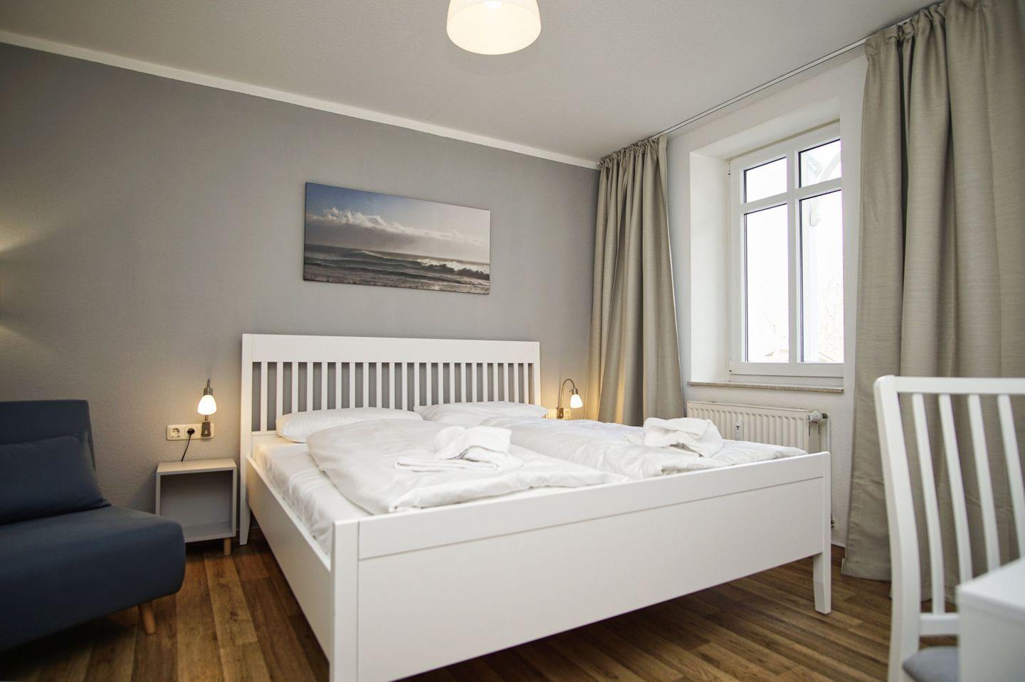 SCHLAFEN // ein Schlafzimmer mit bequemem Doppelbett, bequeme Schlafcouch im Wohnbereich (s.o.) ++