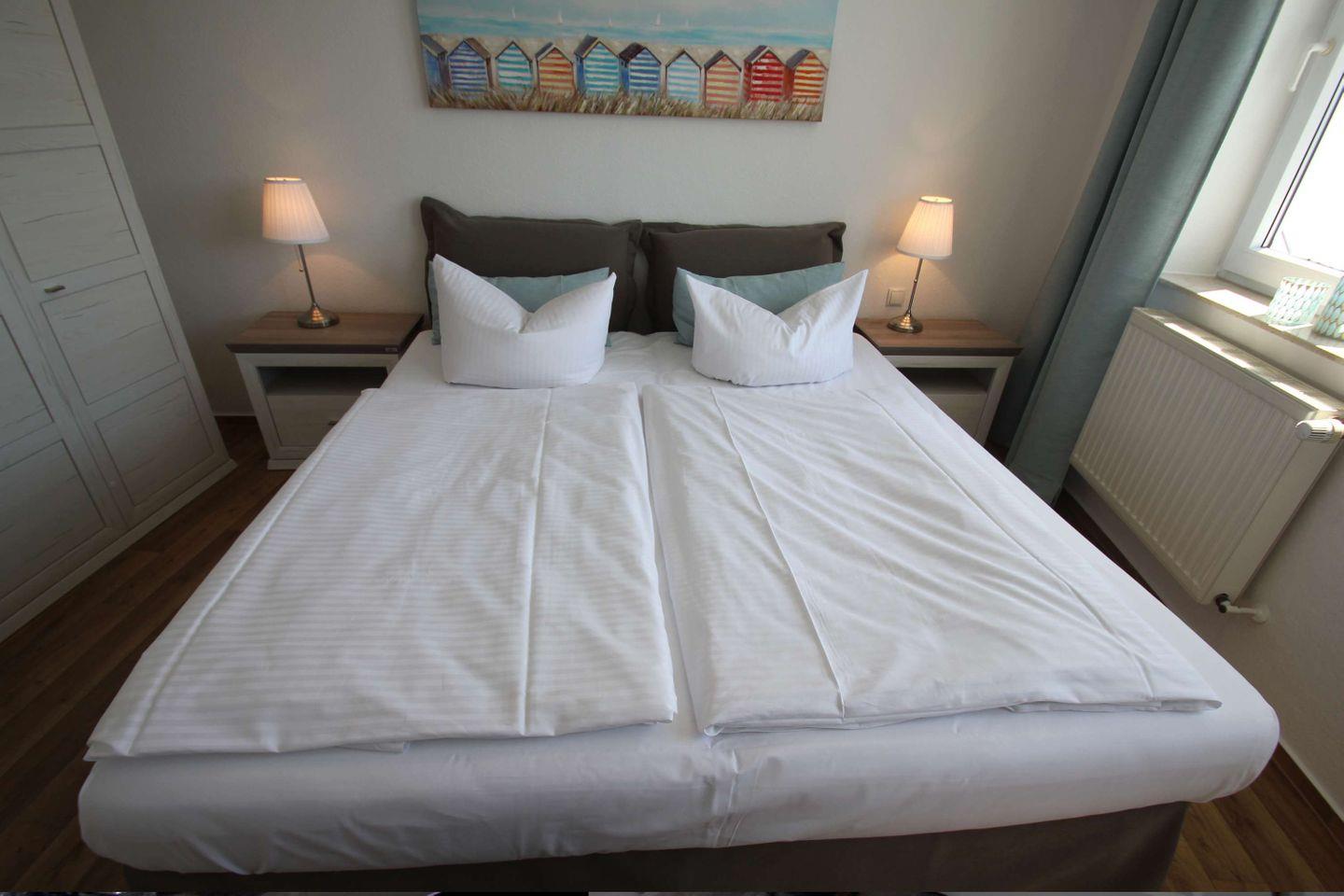 Von außen in weißer, eleganter Bäderstilarchitektur gehalten, von innen geht die Sonne auf – helle Farben erwecken Freude und Lebenslust. In der 2-Raum-Wohnung haben bis zu 4 Personen Platz und es wird Ihnen an nichts fehlen.