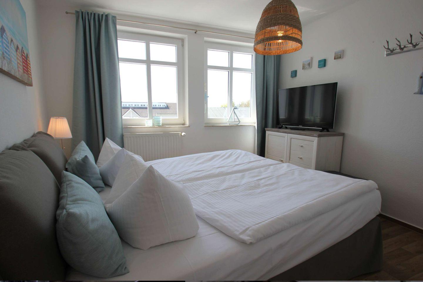 SCHLAFEN // ein Schlafzimmer mit bequemem Doppelbett und Flachbild-TV, bequeme Schlafcouch im Wohnbereich (s.o.) ++