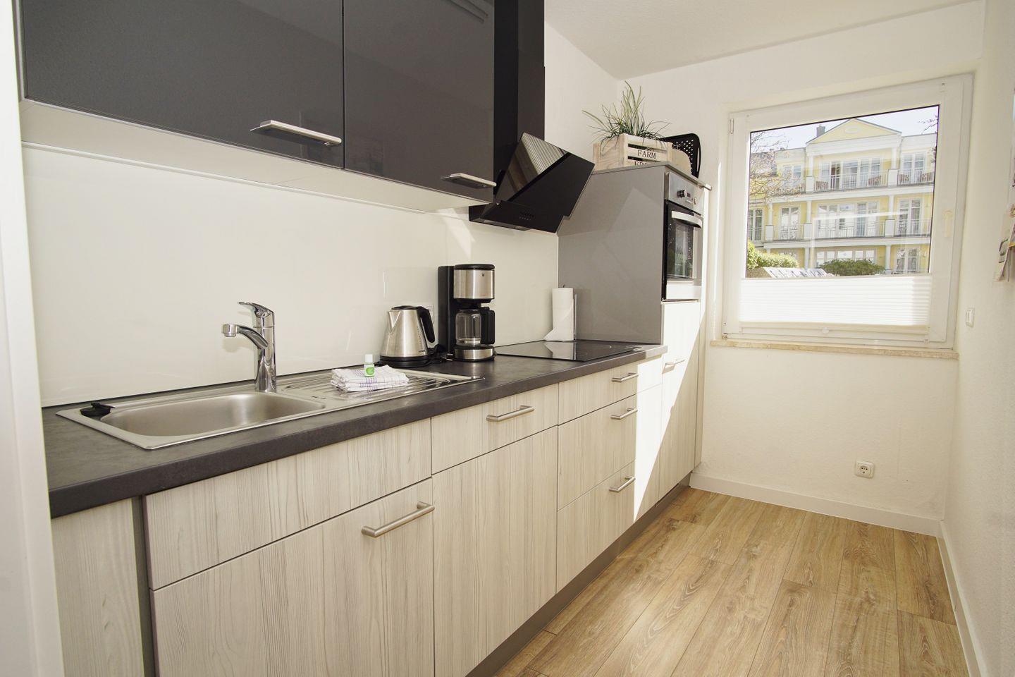 KÜCHE // separate Küche, 4-Platten Cerankochfeld, Spülmaschine, Kühlschrank mit Gefrierfach, Backofen, Toaster, Wasserkocher, Kaffeemaschine, reichlich Besteck, Geschirr und Küchenutensilien ++