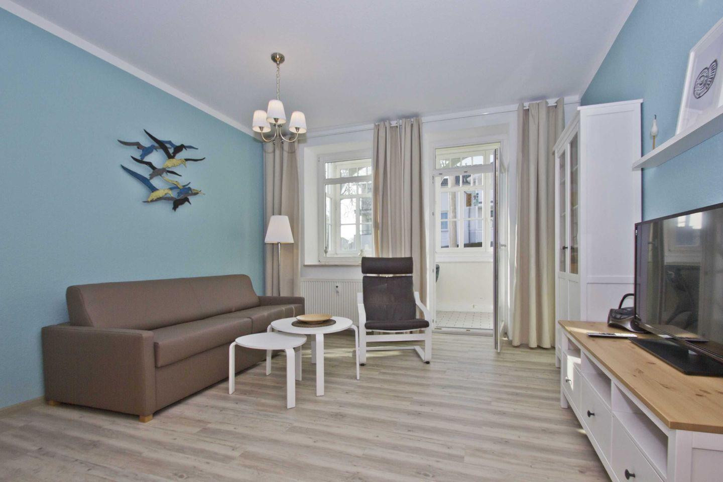 WOHNEN // Wohnraum mit Essbereich, Sitzgarnitur mit bequemer Schlafcouch, Kabel-TV ++