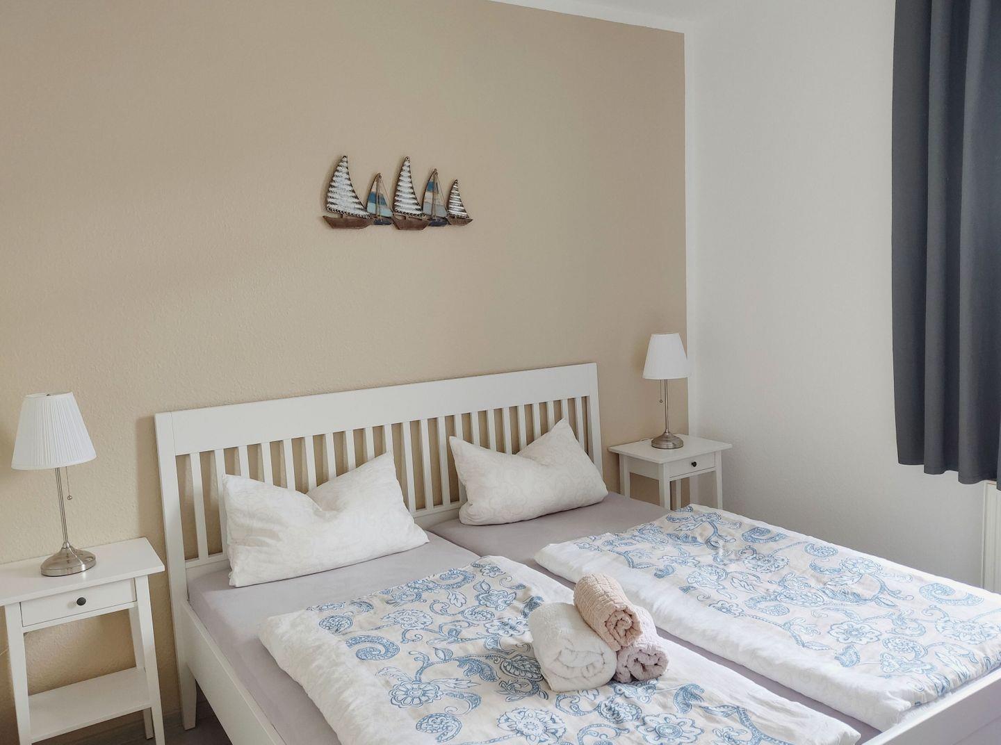 SCHLAFEN // ein Schlafzimmer mit bequemem Doppelbett, bequeme Schlafcouch im Wohnbereich (s.o.) ++