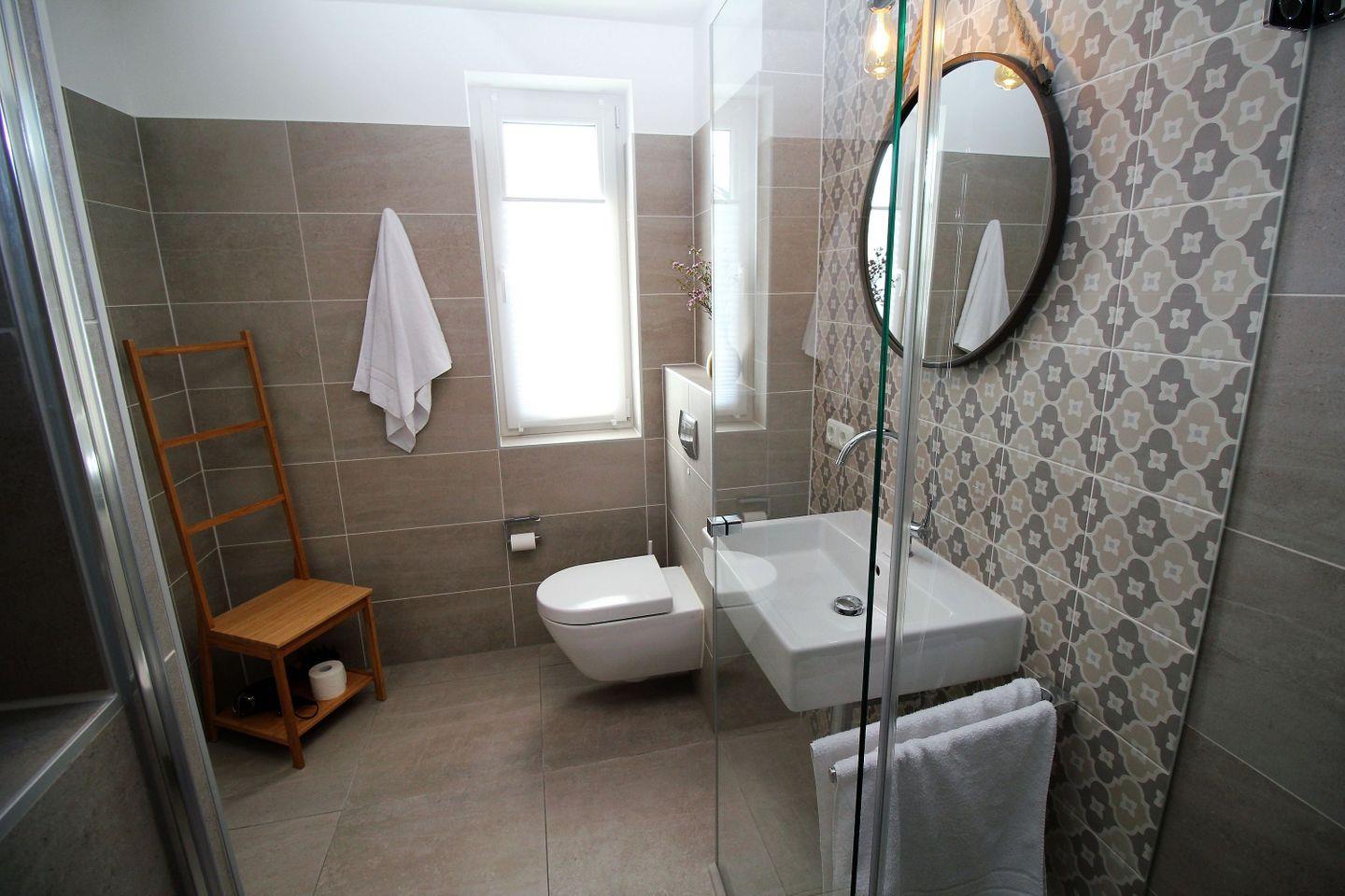 BAD // Tageslichtbad im Souterrain mit Dusche und WC, zusätzliches Gäste WC mit Dusche im Obergeschoss++