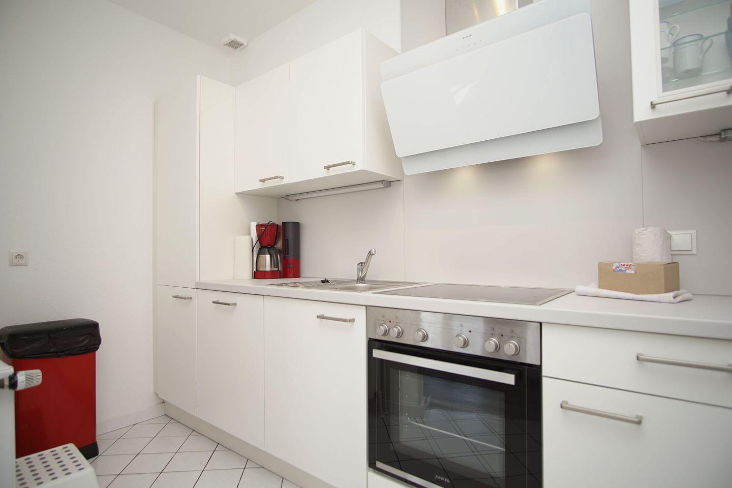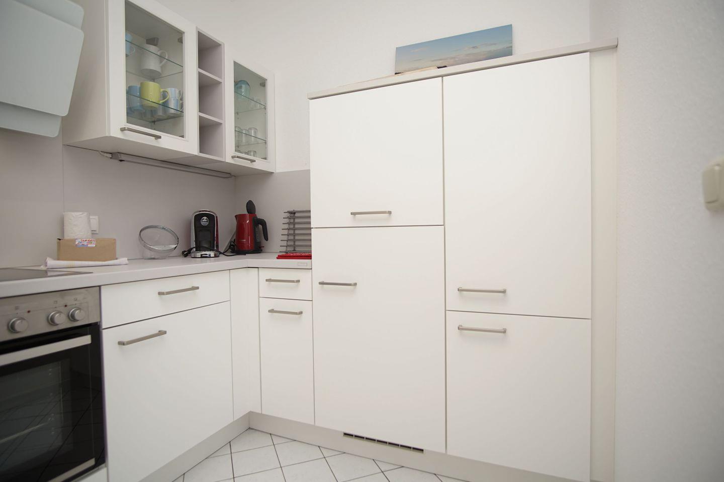 KÜCHE // separate Küche, 4-Platten Ceranherd, Kühlschrank mit Gefrierfach, Backofen, Mikrowelle,Toaster, Wasserkocher, Kaffeemaschine, reichlich Besteck, Geschirr und Küchenutensilien ++