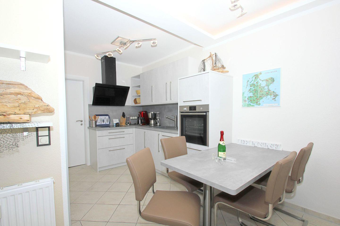 KÜCHE // offene Küche, 4-Felder Induktionskochfeld, Backofen, Kühlschrank mit Gefrierfach, Geschirrspüler, Mikrowelle, Toaster, Wasserkocher, Kaffeemaschine, reichlich Besteck, Geschirr und Küchenutensilien ++