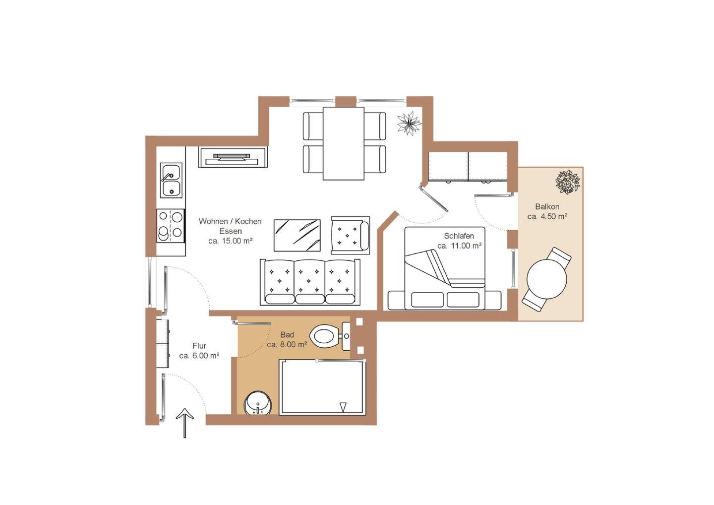 ALLGEMEINE ECKDATEN // 2-Raum-Ferienwohnung für bis zu 3 Personen, 40 m², Balkon ++