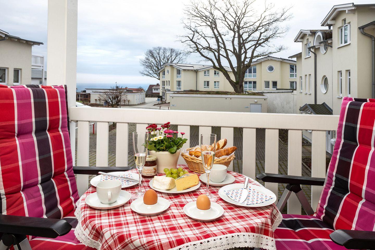 Balkon, gratis Nutzung vom AHOI Erlebnisbad und Sauna - Meeresblick FeWo 45