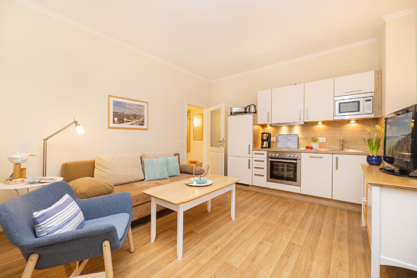 Die Ferienwohnungen in den Meeresblick Residenzen sind nicht nur großzügig geschnitten und komfortabel eingerichtet, sie verfügen darüber hinaus zumeist über eine traumhafte Aussicht über Südost Rügen und die weite Ostsee.