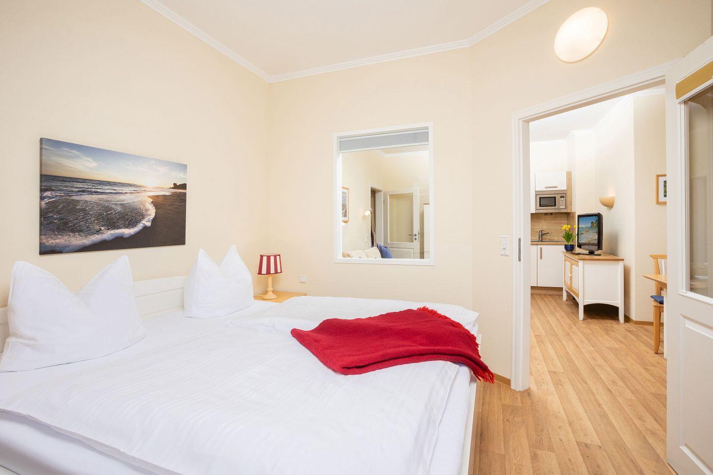 SCHLAFEN // ein Schlafzimmer mit bequemem Doppelbett, bequeme Schlafcouch im Wohnbereich (s.o.) ++