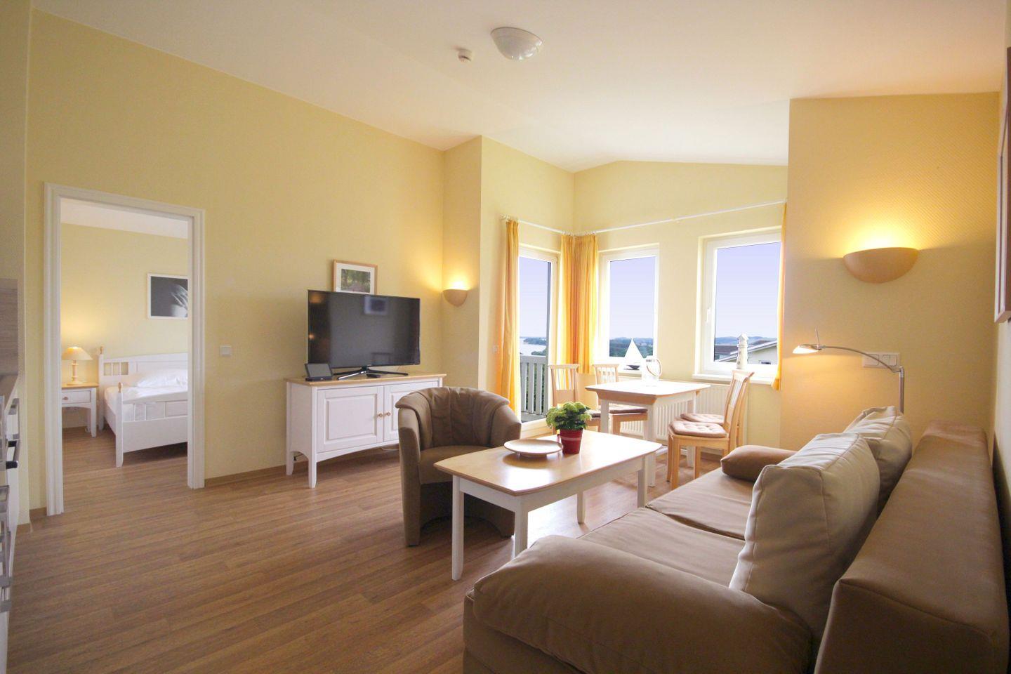 Die 1-, 2- und 3- Raum Ferienwohnungen in den Meeresblick Residenzen sind nicht nur großzügig geschnitten und komfortabel eingerichtet, die meisten verfügen darüber hinaus über eine traumhafte Aussicht über Südost Rügen und die weite Ostsee. Kostenloses WLan ist in dieser Residenzanlage selbstverständlich. Pro Ferienwohnung steht Ihnen ein PKW-Stellplatz (kostenfrei) zur Verfügung.