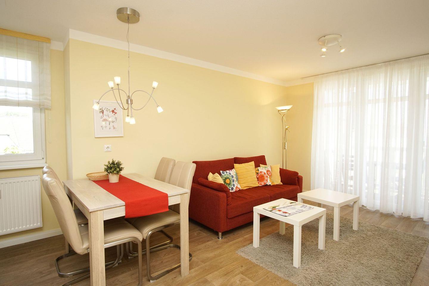 Die 1-, 2- und 3- Raum Ferienwohnungen in den Meeresblick Residenzen sind nicht nur großzügig geschnitten und komfortabel eingerichtet, die meisten verfügen darüber hinaus über eine traumhafte Aussicht über Südost Rügen und die weite Ostsee. Kostenloses WLan ist in dieser Residenzanlage selbstverständlich. Pro Ferienwohnung steht Ihnen ein PKW-Stellplatz (kostenfrei) zur Verfügung.