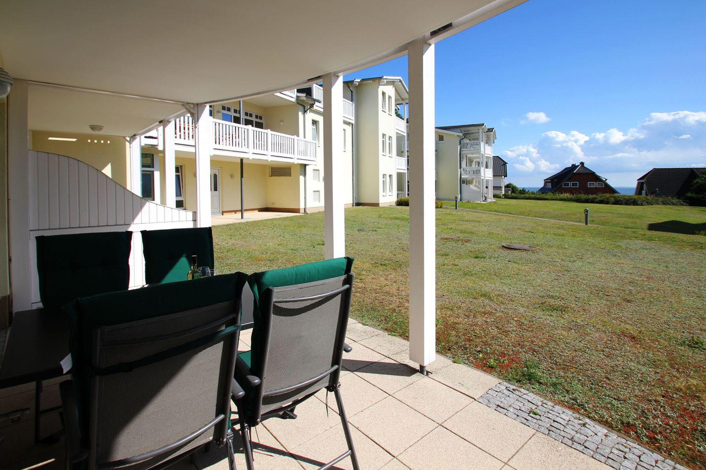 Terrasse, gratis Nutzung vom AHOI Erlebnisbad und Sauna - Meeresblick FeWo 31