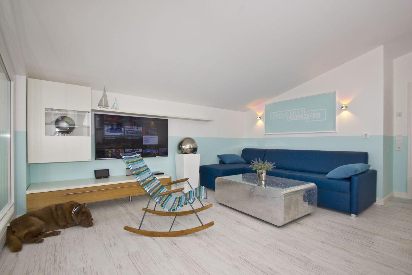 WOHNEN // Wohnraum mit Essbereich, Sitzgarnitur mit bequemer Couch, Kabel-TV, Kino-Soundsystem ++
