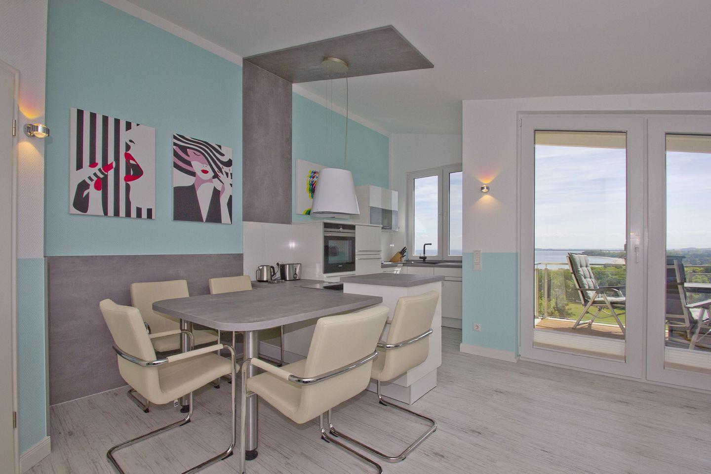 Die 1-, 2- und 3- Raum Ferienwohnungen in den Meeresblick Residenzen sind nicht nur großzügig geschnitten und komfortabel eingerichtet, die meisten verfügen darüber hinaus über eine traumhafte Aussicht über Südost Rügen und die weite Ostsee. Kostenloses WLan ist in dieser Residenzanlage selbstverständlich. Pro Ferienwohnung steht Ihnen ein PKW-Stellplatz (kostenfrei) zur Verfügung.