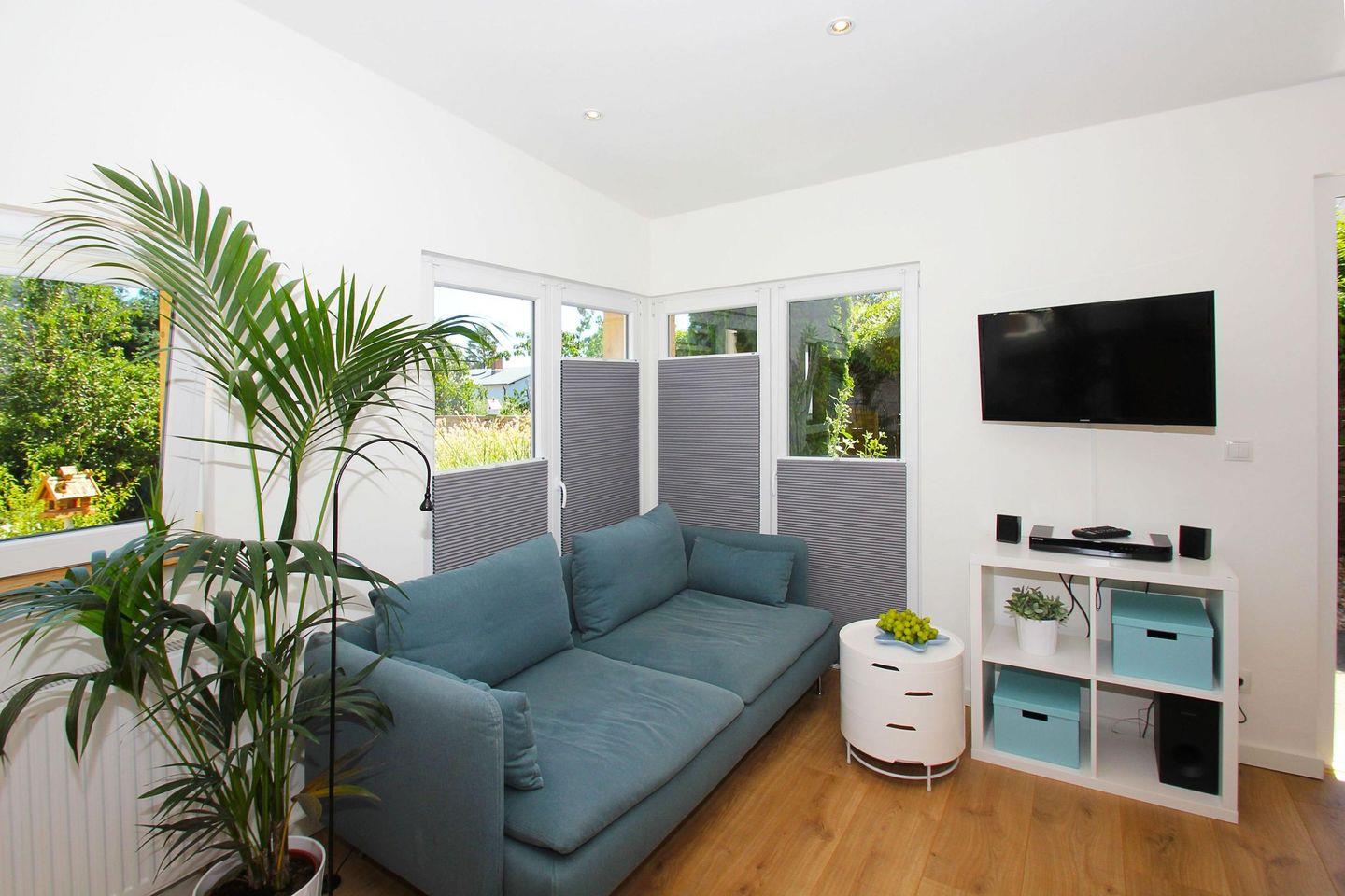 WOHNEN // Wohnraum mit Essbereich, Sitzgarnitur mit bequemer Couch, Flachbild-TV, Musikanlage ++