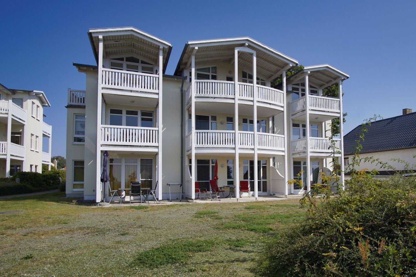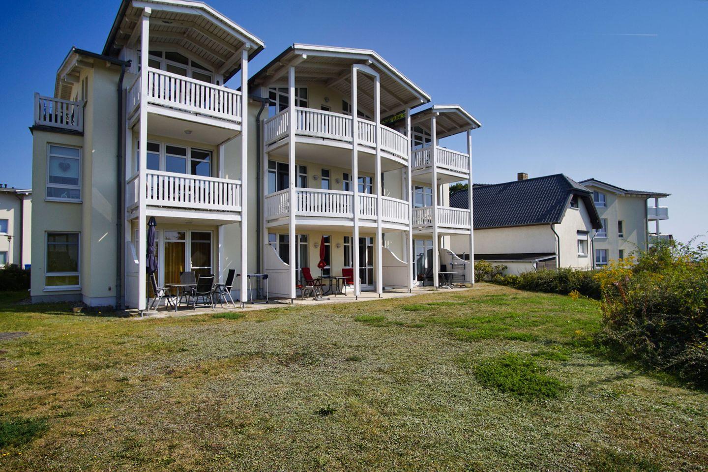 Die gepflegte, von großzügigen Rasenflächen eingefasste Anlage liegt in einer ruhigen Seitenstraße des Ostseebades Göhren.