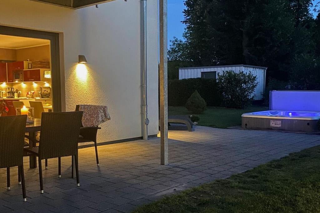 Stueetage: (entre(, , varme), Køkken(, , , kogeplade, elkedel, brødrister, kaffemaskine, ovn, mikrobølgeovn, opvaskemaskine , køleskab, fryser, varme, insektnet), stue / spisestue(, , bibliotek, Fjernsyn, spisebord, pejs, DVD-afspiller, DVD-afspiller, Blu-ray afspiller, radio, CD-afspiller, stereoanlæg, varme, barnestol, insektnet), badeværelse(, toilet, bruser, håndvask, varme, føntørrer, insektnet), loungerum(sauna)) På 1. etage: (soveværelse(, , , , dobbeltseng, Fjernsyn, Fjernsyn, radio, tremmeseng, varme, insektnet), soveværelse(, , , , dobbeltseng, Fjernsyn, Fjernsyn, radio, varme, insektnet), badeværelse(, toilet, radio, bruser, håndvask, varme, føntørrer, insektnet), pulterkammer(, vaskemaskine, strygebræt, strygejern, tørreskab)) På 2. etage: (loungemøbler(, Fjernsyn, insektnet)) , , , , pulterkammer(Haveskur), Internetadgang, Førstehjælp, vaskemaskine, balkon(havemøbler), varme, terrasse(, grill, havemøbler, solstole, swimmingpool), have(, Græsplæne, grill, hottub, havemøbler, solstole, Haveskur), parkering, trappegitter, strygebræt, strygejern, tørreskab
