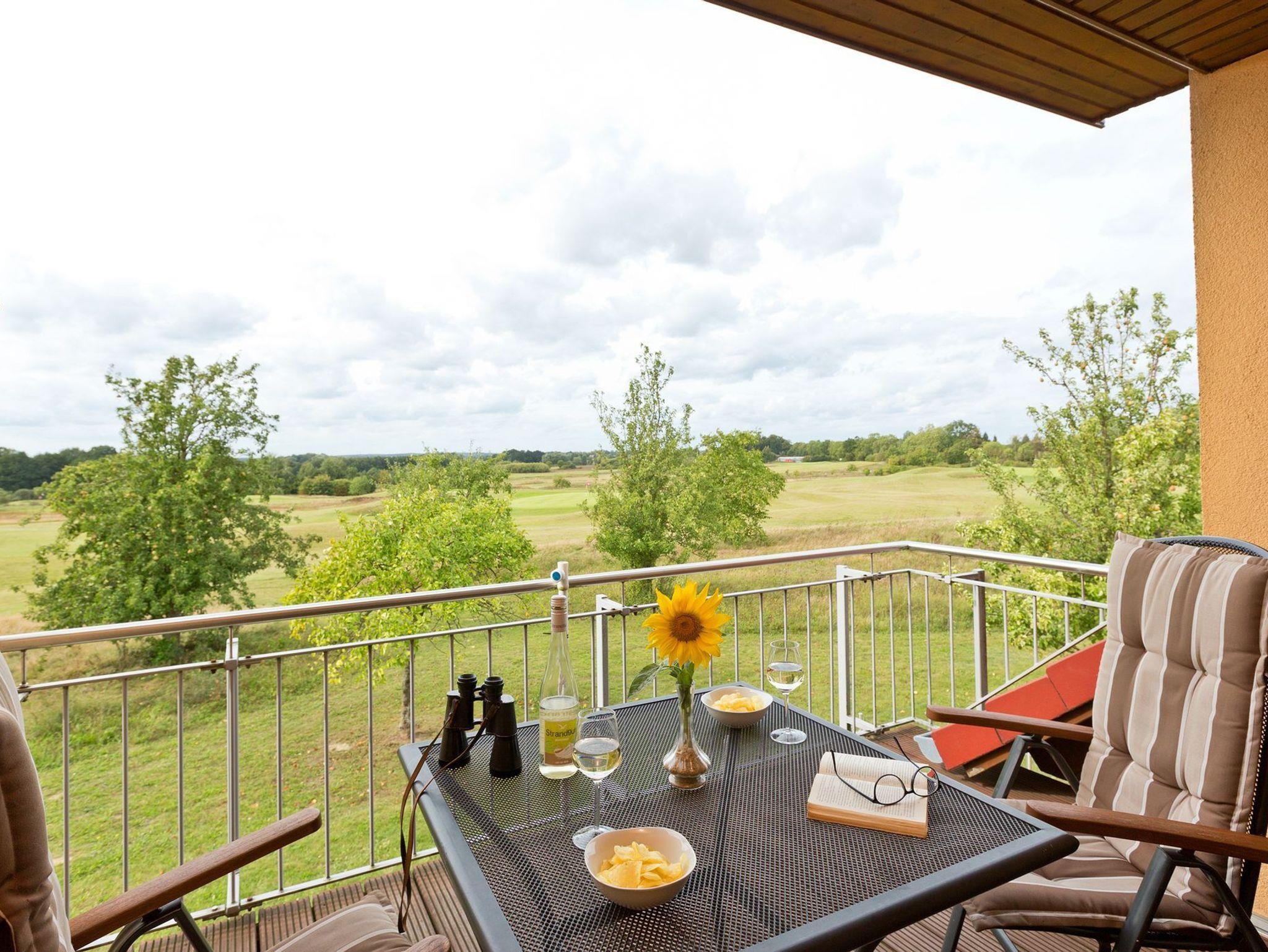 Die Ferienwohnung 64qm direkt am Golfplatz gelegen, mit 2 Schlafzimmer für max. 4 Personen befindet sich im 1 OG rechts. Tageslichtbad, Balkon und mit Vollausstattung ist eine Nichtraucherwohnung wo Haustiere erlaubt sind. Inklusive Verbrauchskosten, PKW Stellplatz, abschließbarer Hütte für Fahrräder.