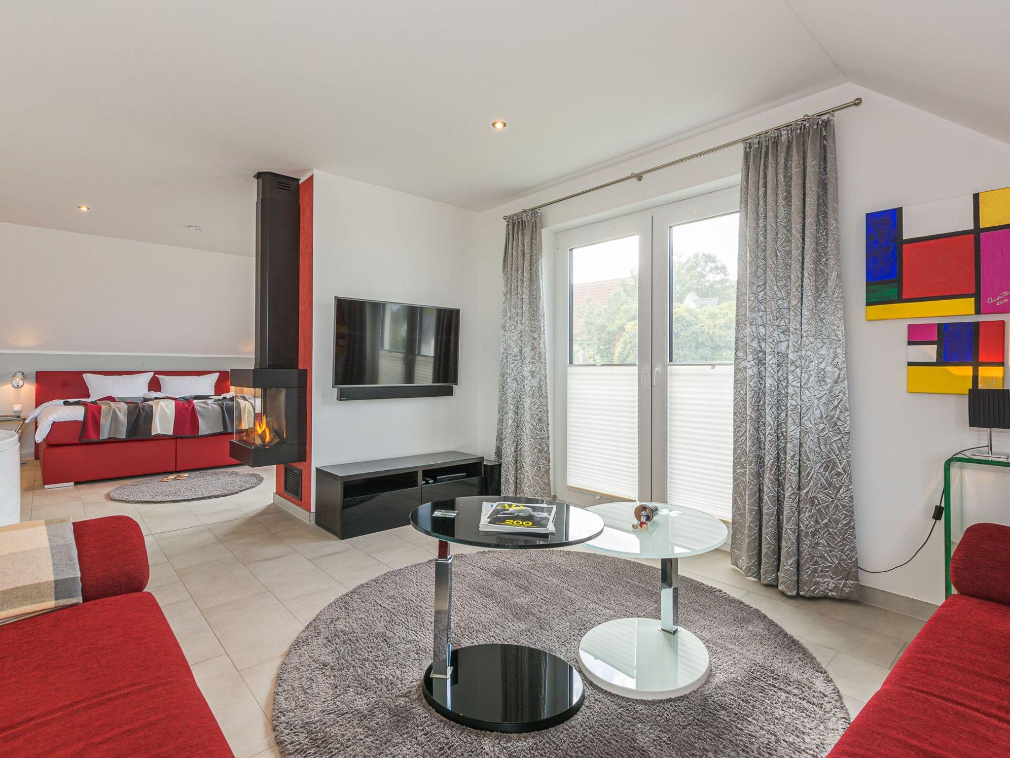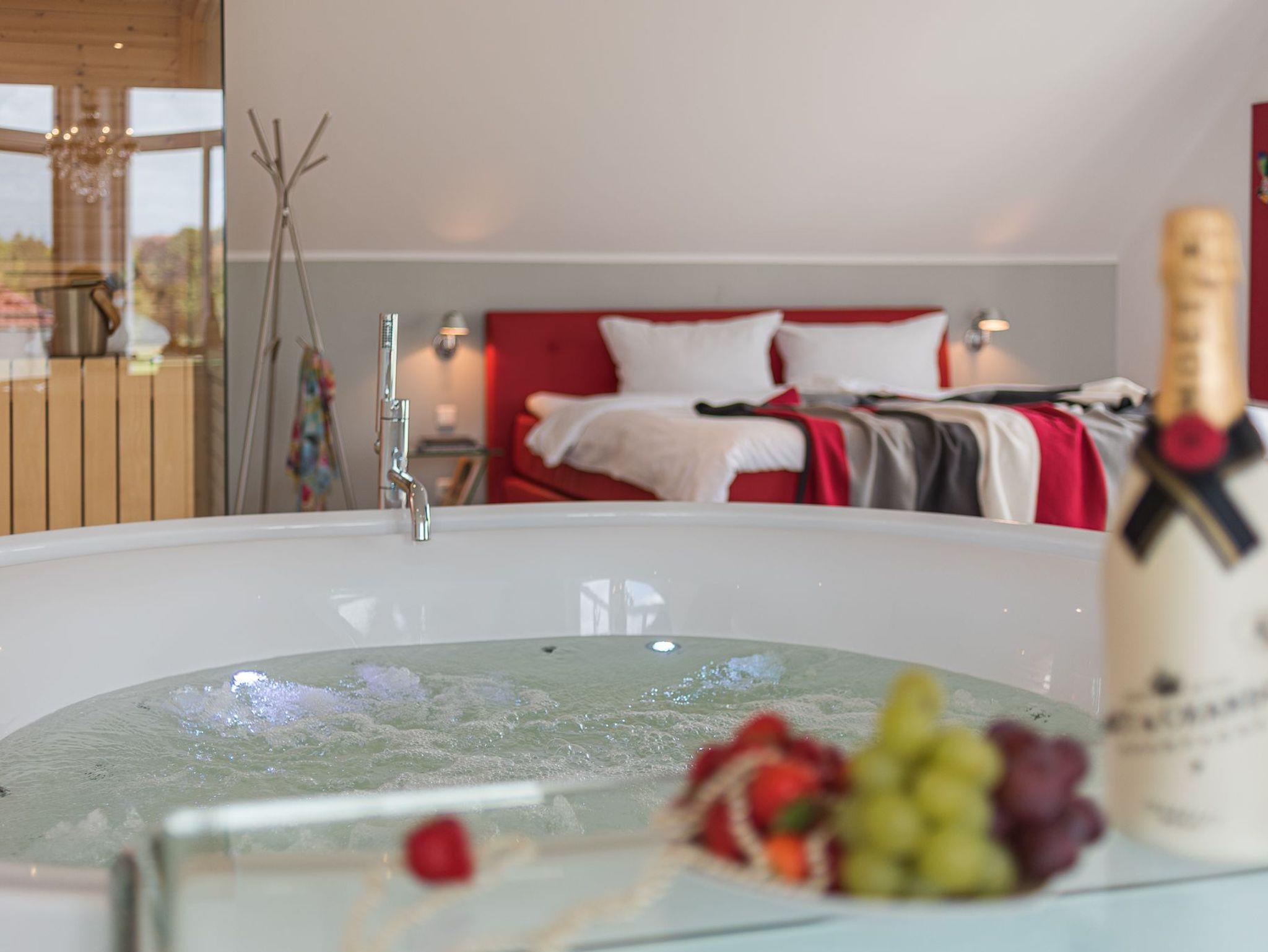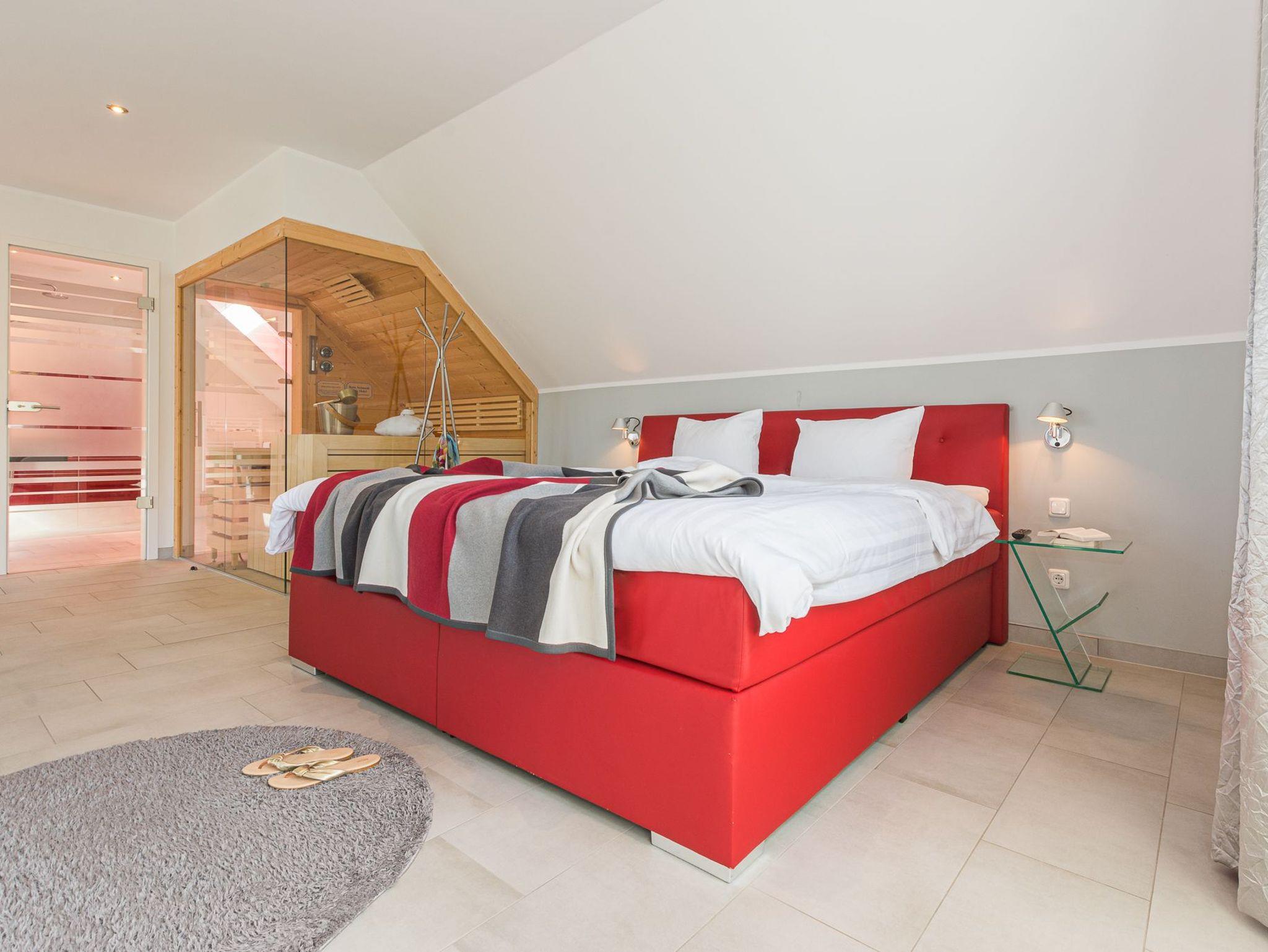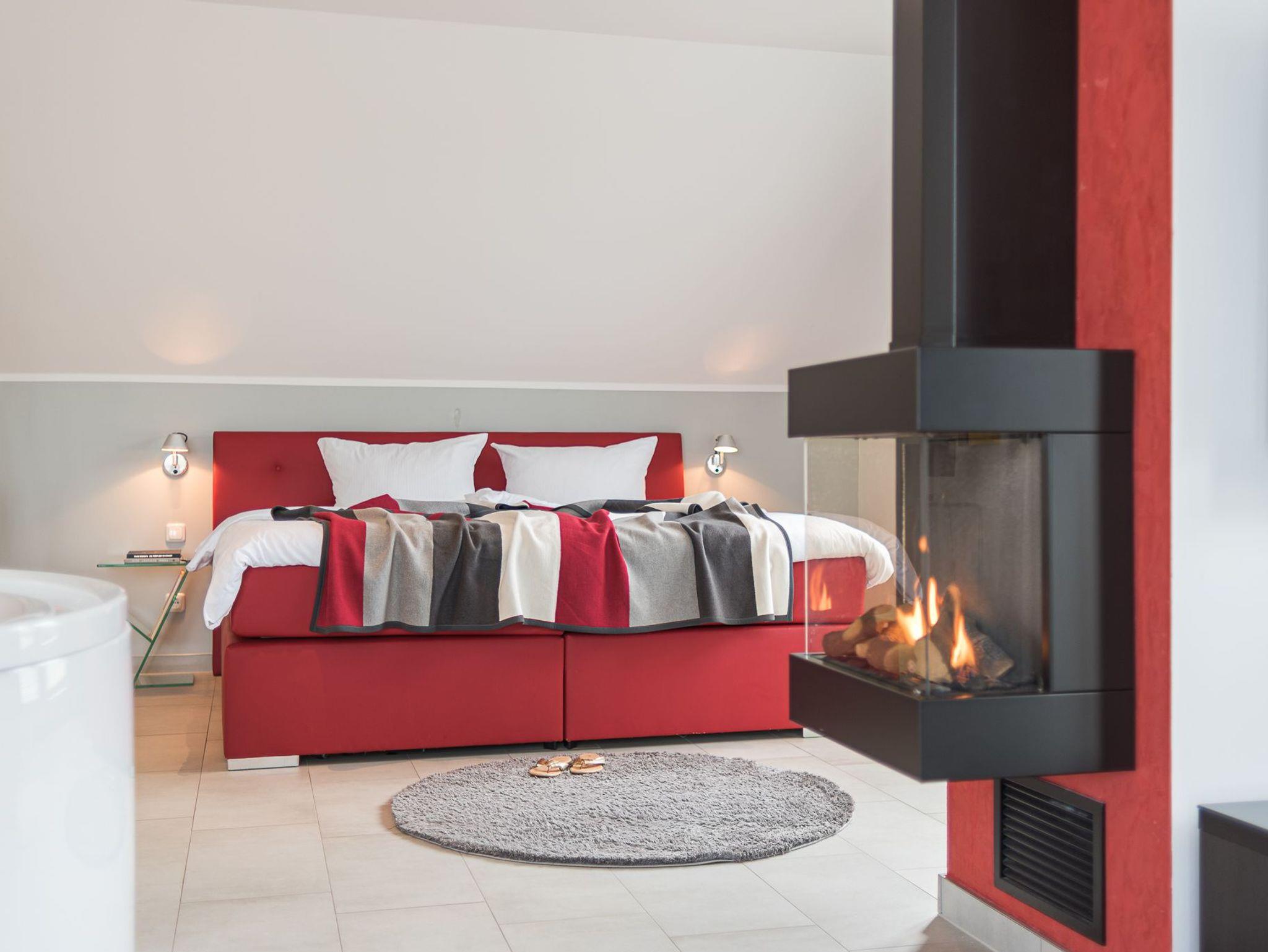Mit großzügigen 78 m² Wohnfläche bietet diese Suite einen Rückzugsort. Der offene Schlafbereich schafft eine romantische Atmosphäre. Der offene Wohn- und Essbereich mit einem gemütlichen Gas-Kamin bietet Ihnen eine behagliche Umgebung, um entspannte Stunden zu verbringen. Die Küche ermöglicht es Ihnen, Ihre kulinarischen Vorlieben auszuleben und sich gegenseitig zu verwöhnen. Das moderne Badezimmer bietet ein absolutes Highlight mit der vollverglasten Sauna, die Ihnen pure Entspannung und Erholung bietet. Der Indoor-Whirlpool mit LED-Beleuchtung verspricht romantische Momente und verwöhnt Sie. Hier können Sie gemeinsam entspannen und die Zeit zu zweit in vollen Zügen genießen.