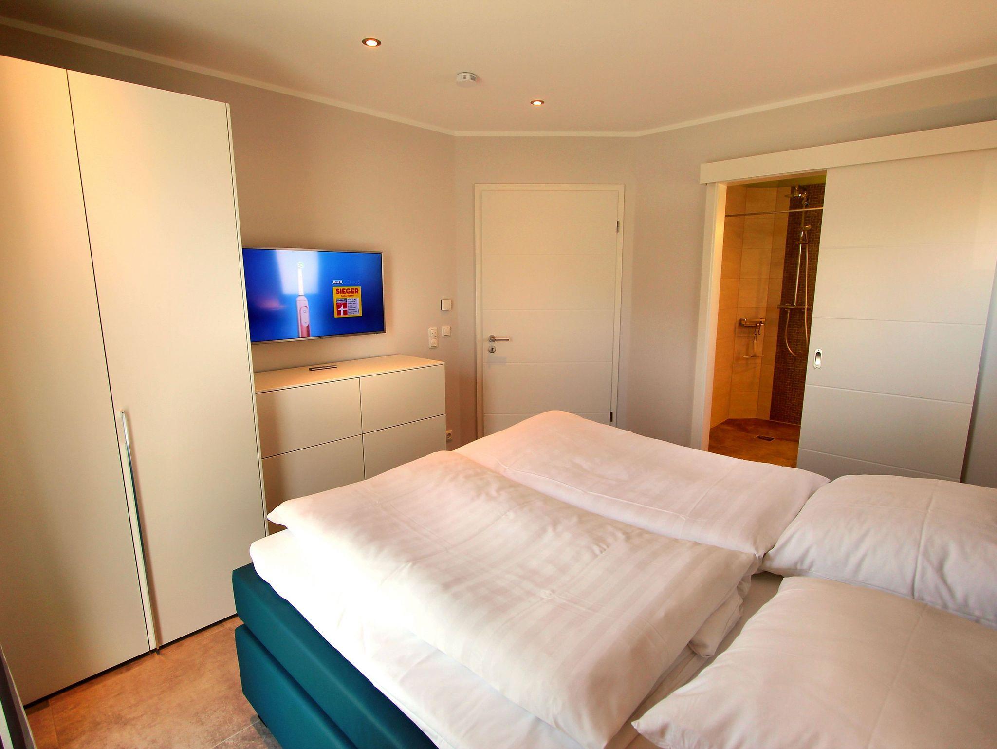 Auf großzügigen 100m² Wohnfläche erwartet Sie ein komfortables und luxuriöses Ambiente. Die beiden Schlafzimmer bieten Ihnen einen erholsamen Schlaf und sind stilvoll eingerichtet. Die beiden Badezimmer sind mit Komfort und Luxus ausgestattet, eines davon verwöhnt Sie mit einer entspannenden Sauna, in der Sie wunderbar relaxen können. Der offene Wohn- und Essbereich verfügt über einen gemütlichen Gas-Kamin, der für eine behagliche Atmosphäre sorgt. Hier können Sie gemütliche Abende verbringen und die Zeit in geselliger Runde genießen.