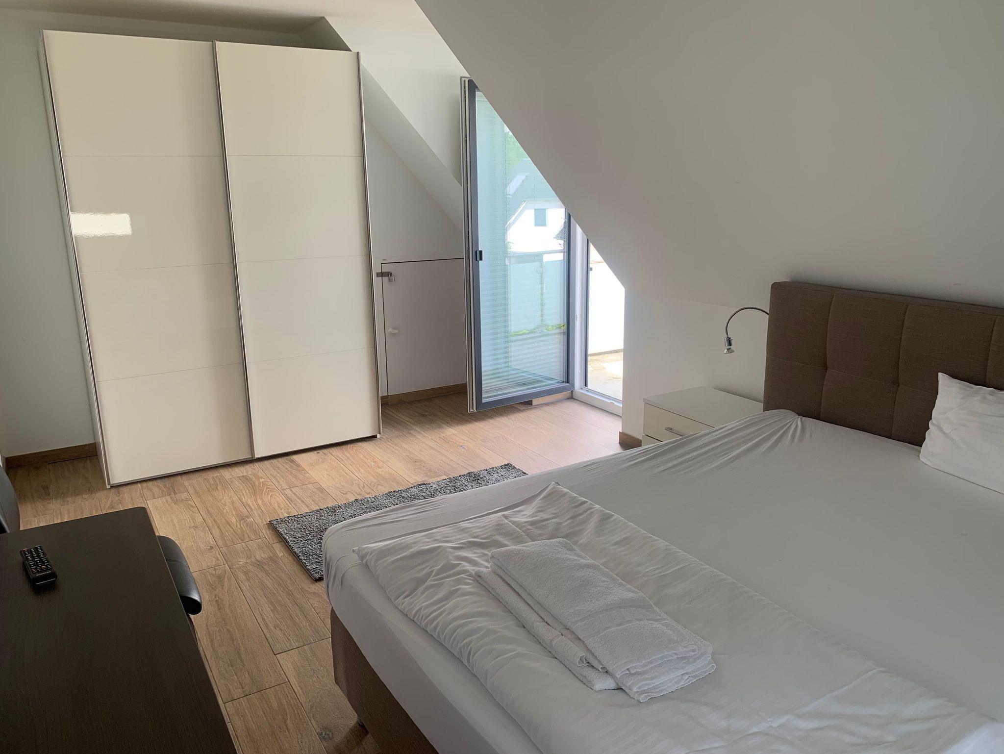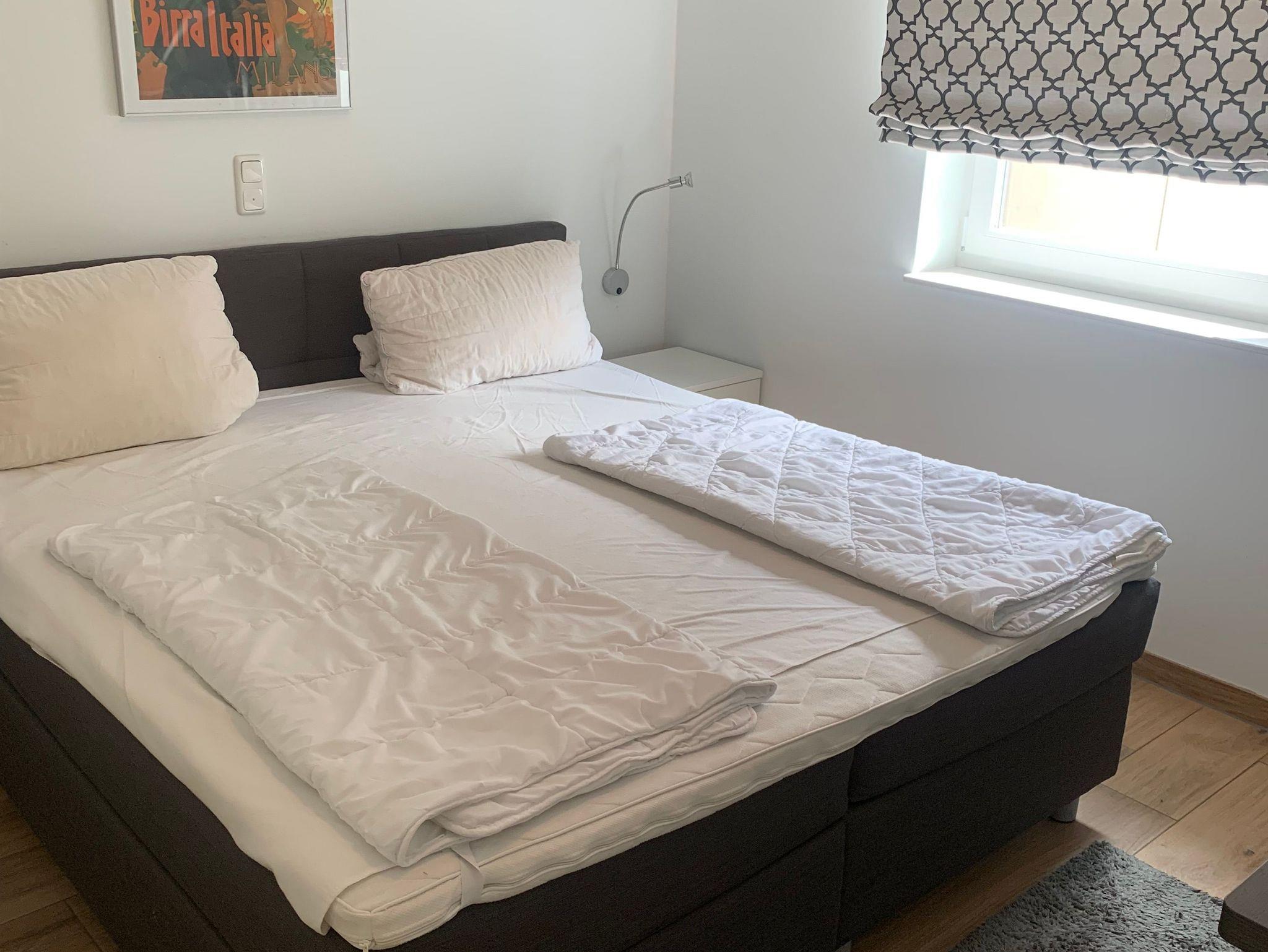 Die 3 Schlafzimmer verfügen ebenfalls alle über Flat-TV und sind jeweils mit 180 x 200 cm großen Boxspringbetten ausgestattet.