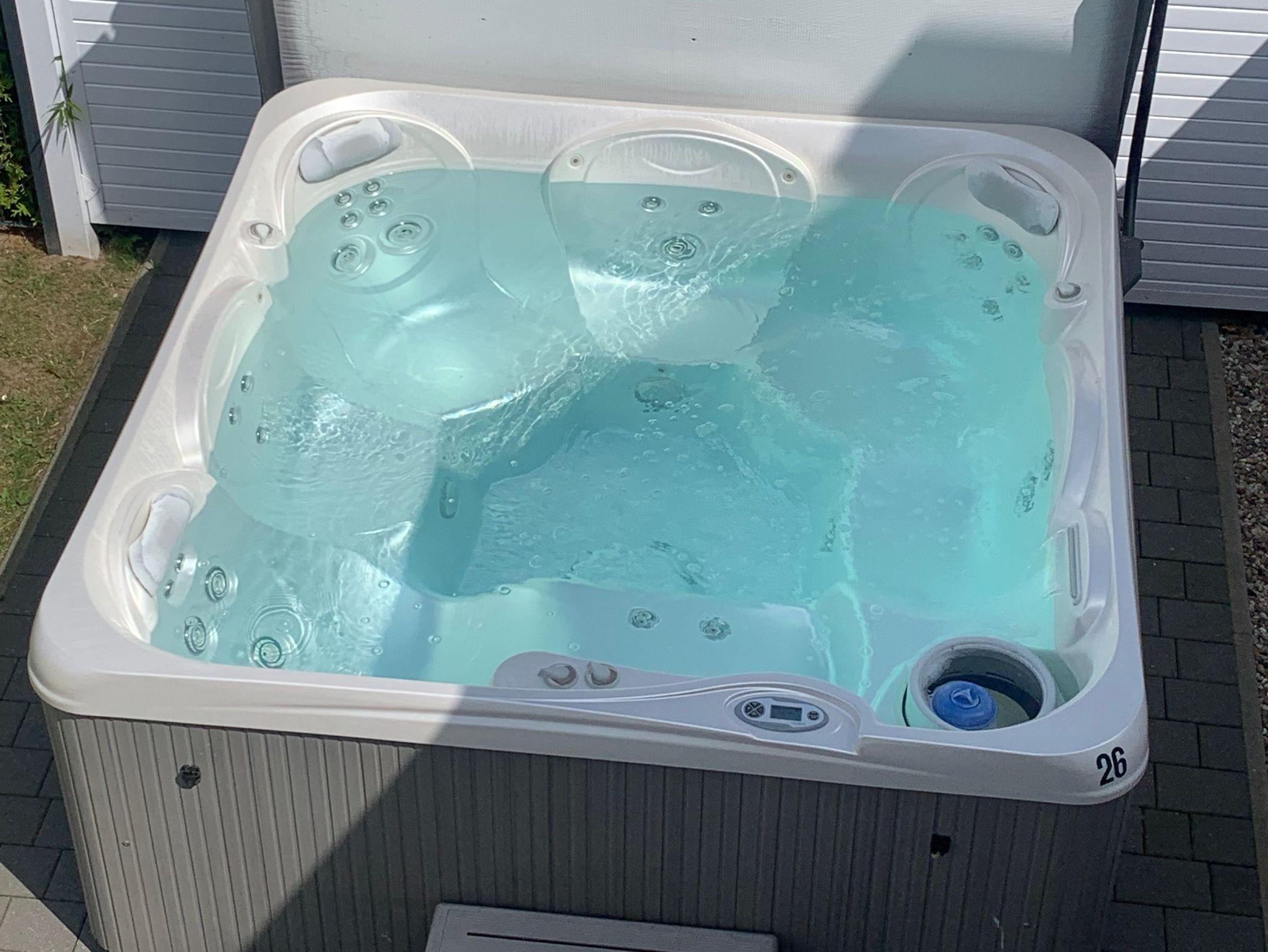 Der ganzjährig beheizte Außenwhirlpool mit 38 Grad Wassertemperatur und Hydromassagejets ist nur ein Highlight von vielen. In der Kombination Sauna, Gaskamin und Whirlpool wird Ihnen das Herz aufgehen.