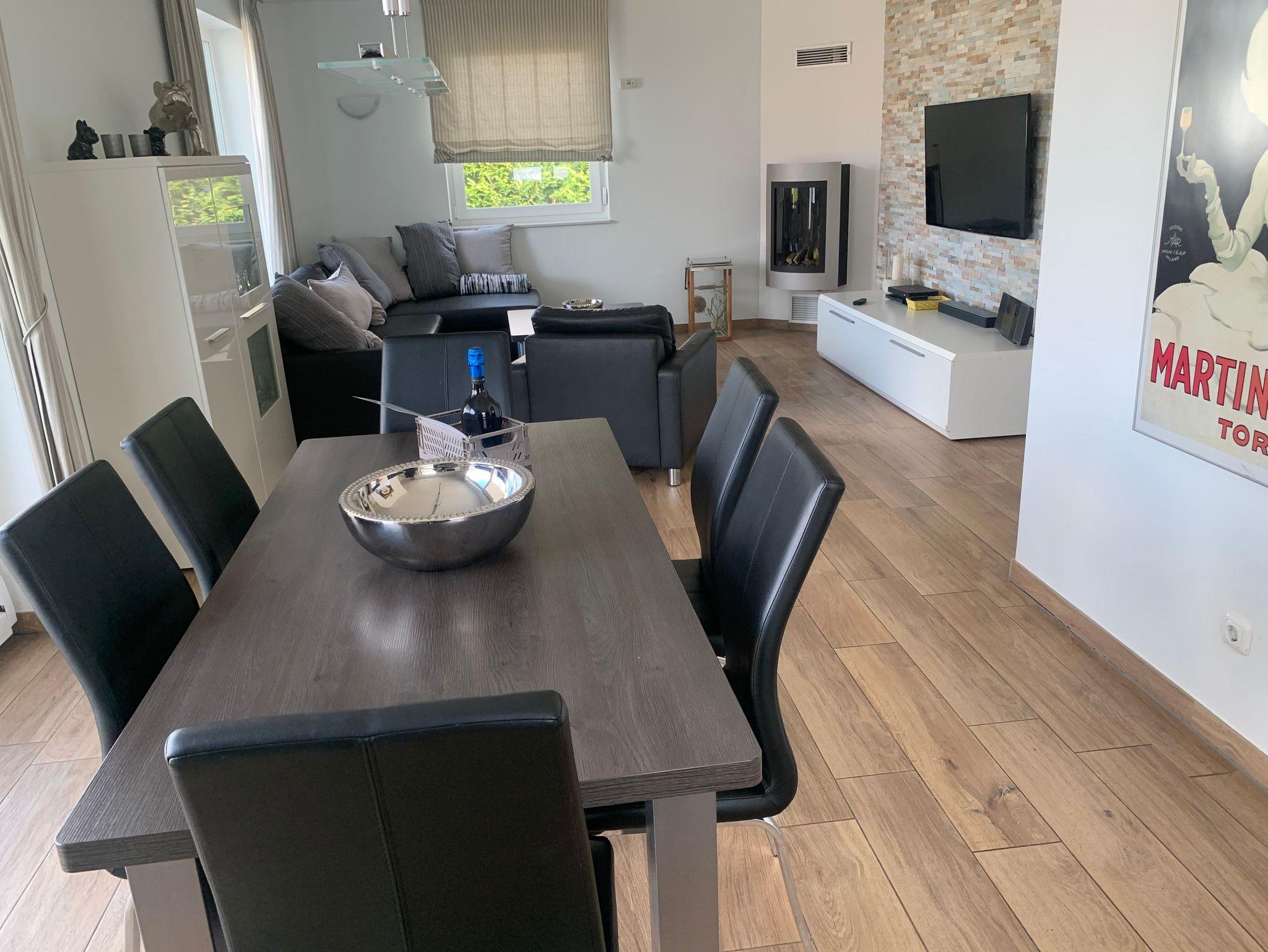 Die Villa bietet für einen entspannten Urlaub alles was Sie benötigen. Sei es der große Wohnbereich mit offener Küche und Zugang zum Garten oder der Essbereich mit allem Avec.