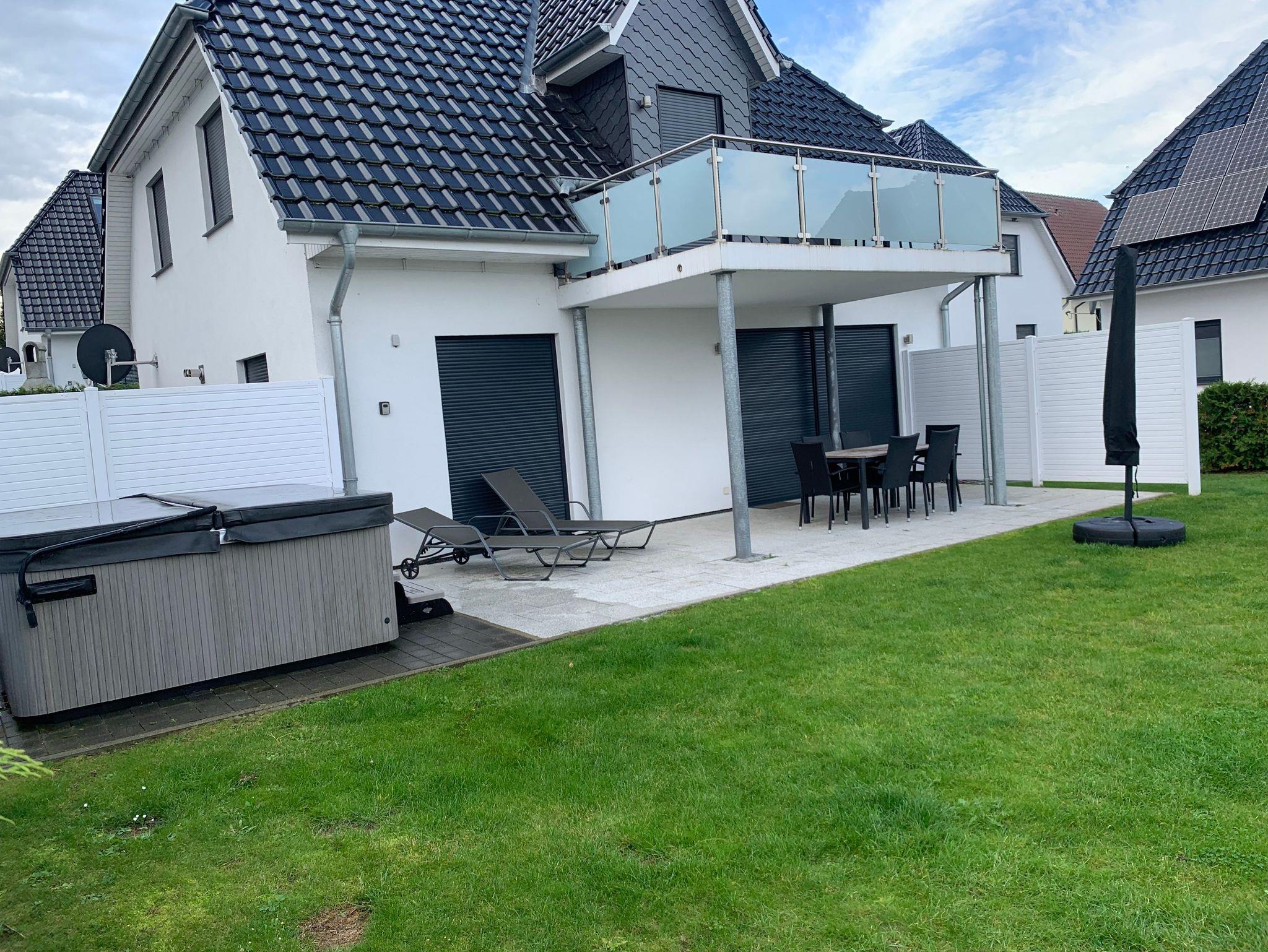 Unsere Luxus-Villa möchte mit 3 Schlafzimmern, 2 Bädern, Sauna & ganzjährigem 38 Grad Außenwhirlpool, und eingezäunten Garten bei Ihnen punkten.