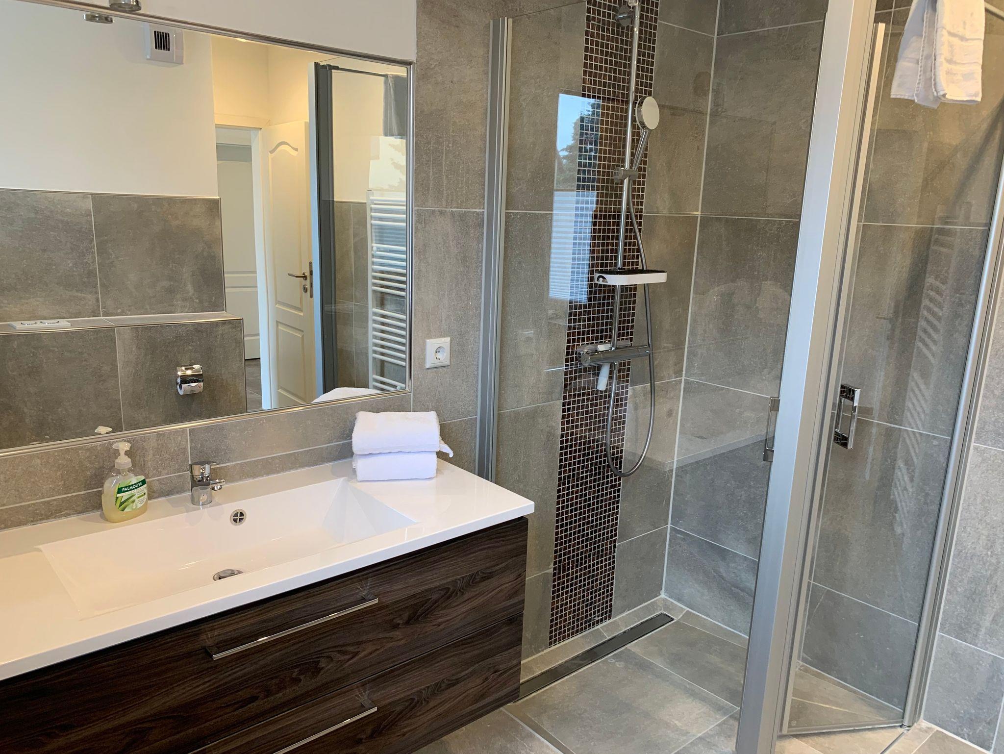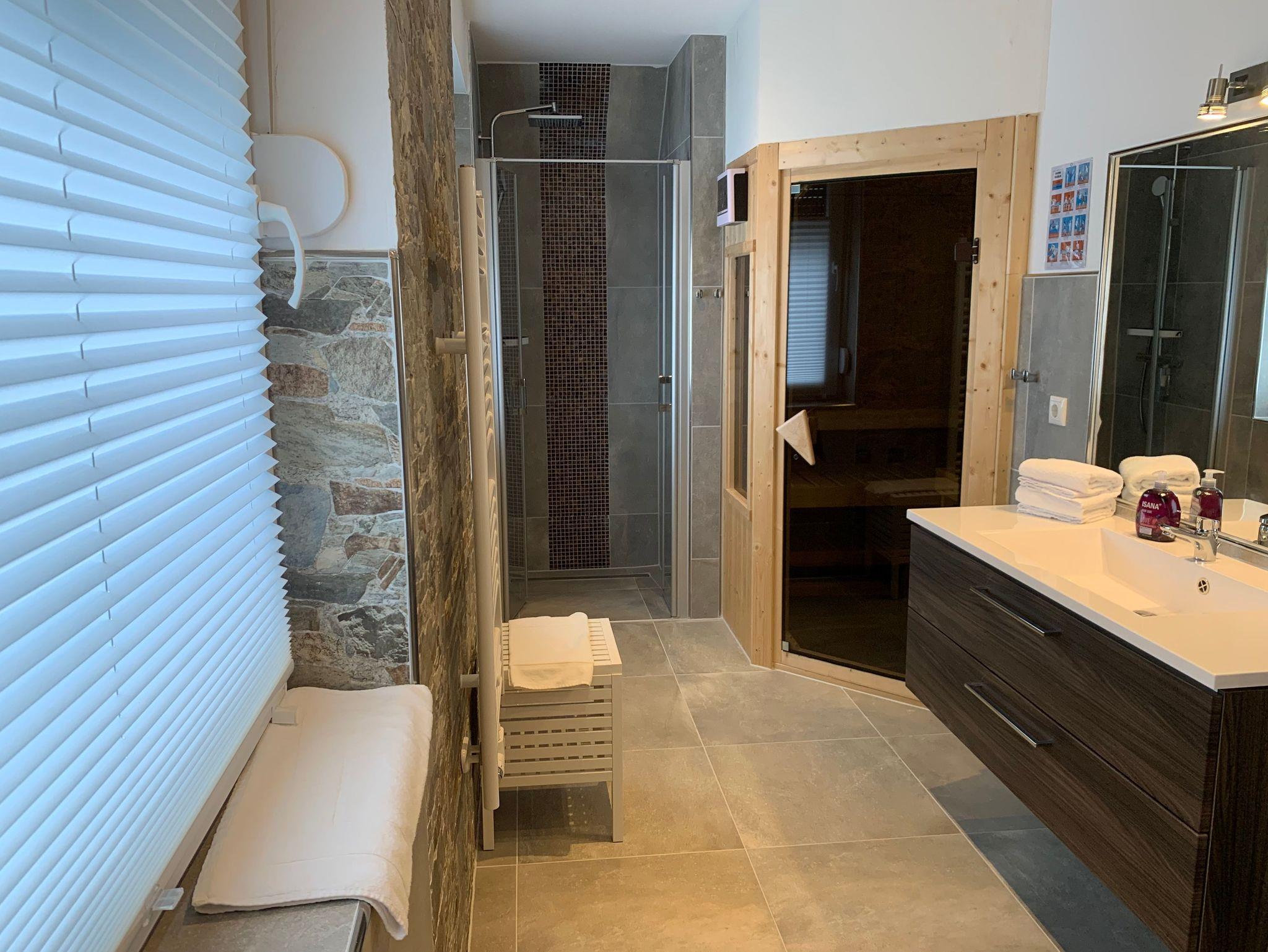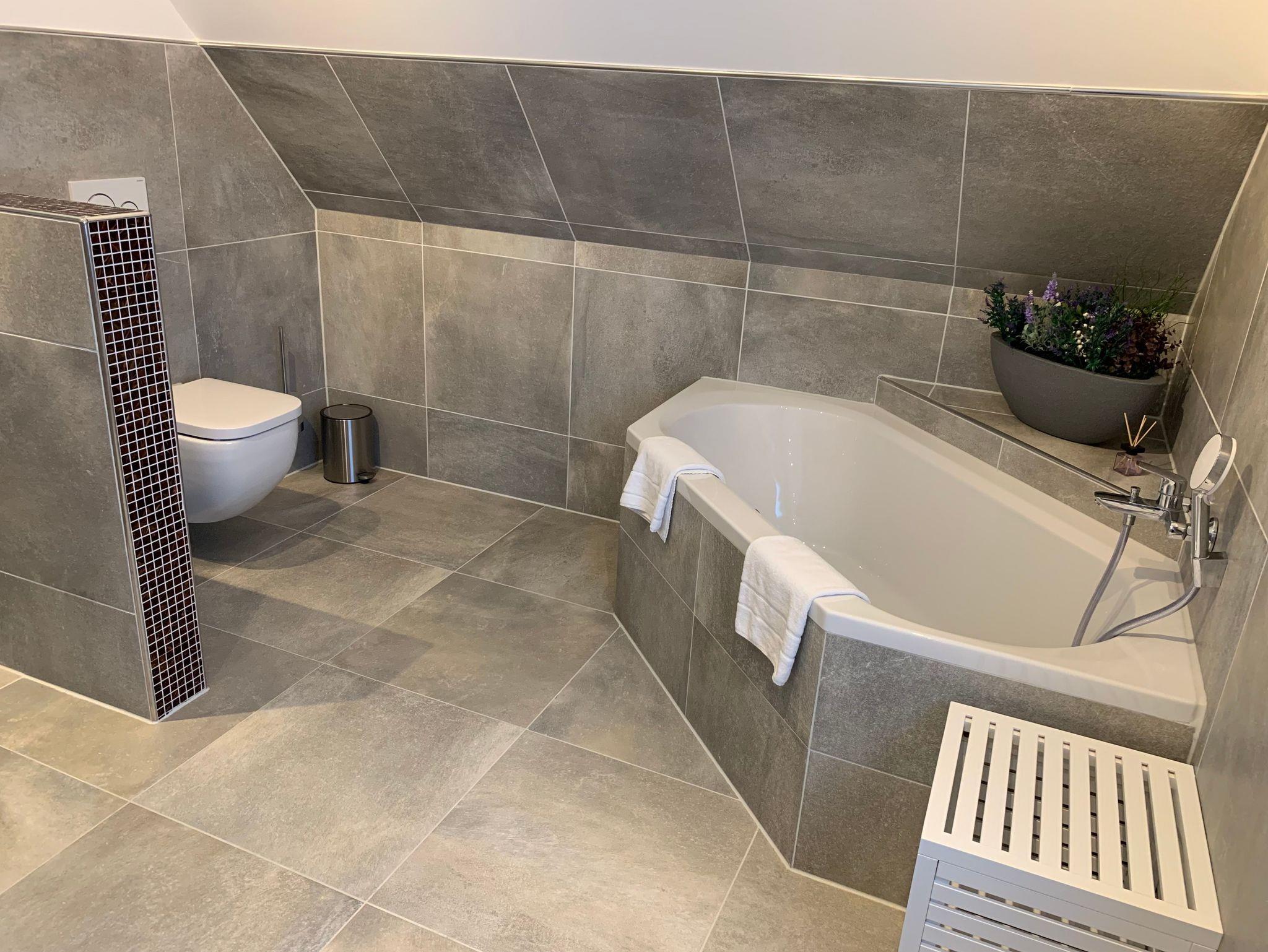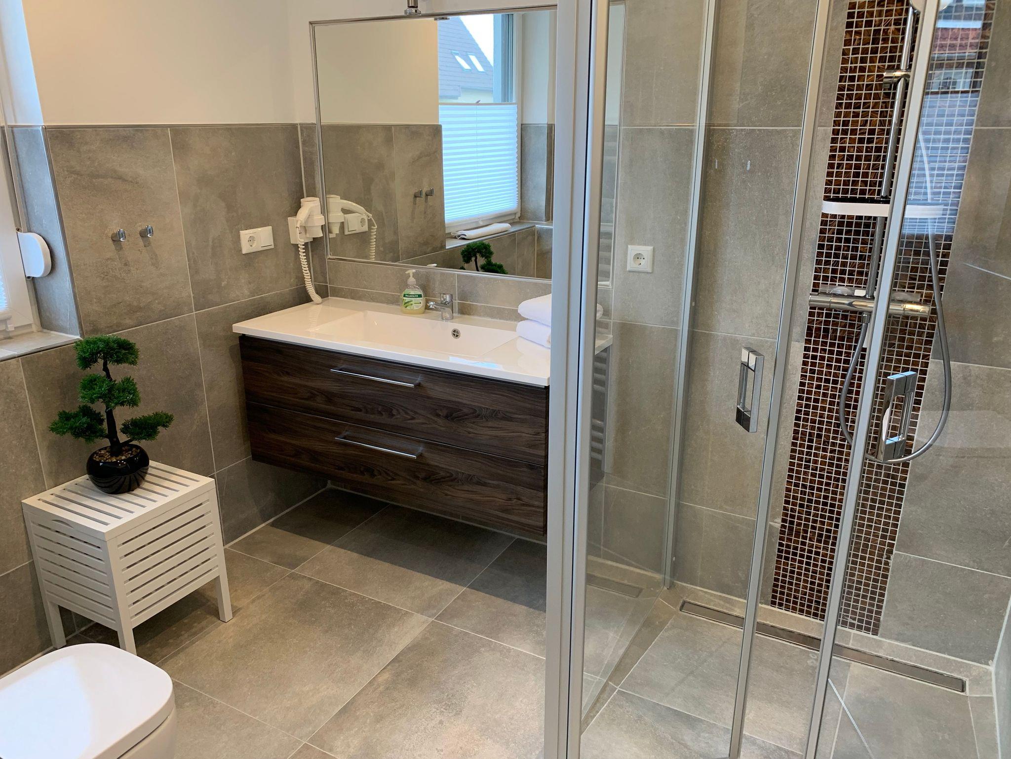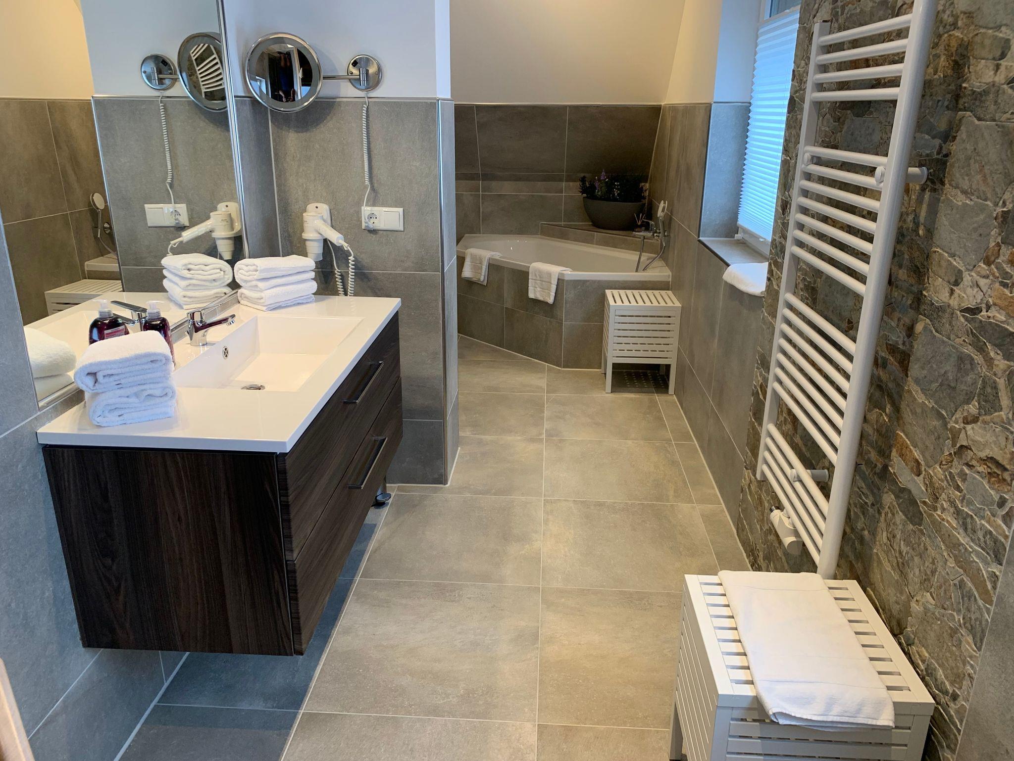 Die Bäder bieten moderne Waschtische und Raindanceduschen. Das große Bad verfügt zusätzlich über eine Badewanne und eineSauna. Alle Räume werden über eine Fussbodenheizung beheizt..