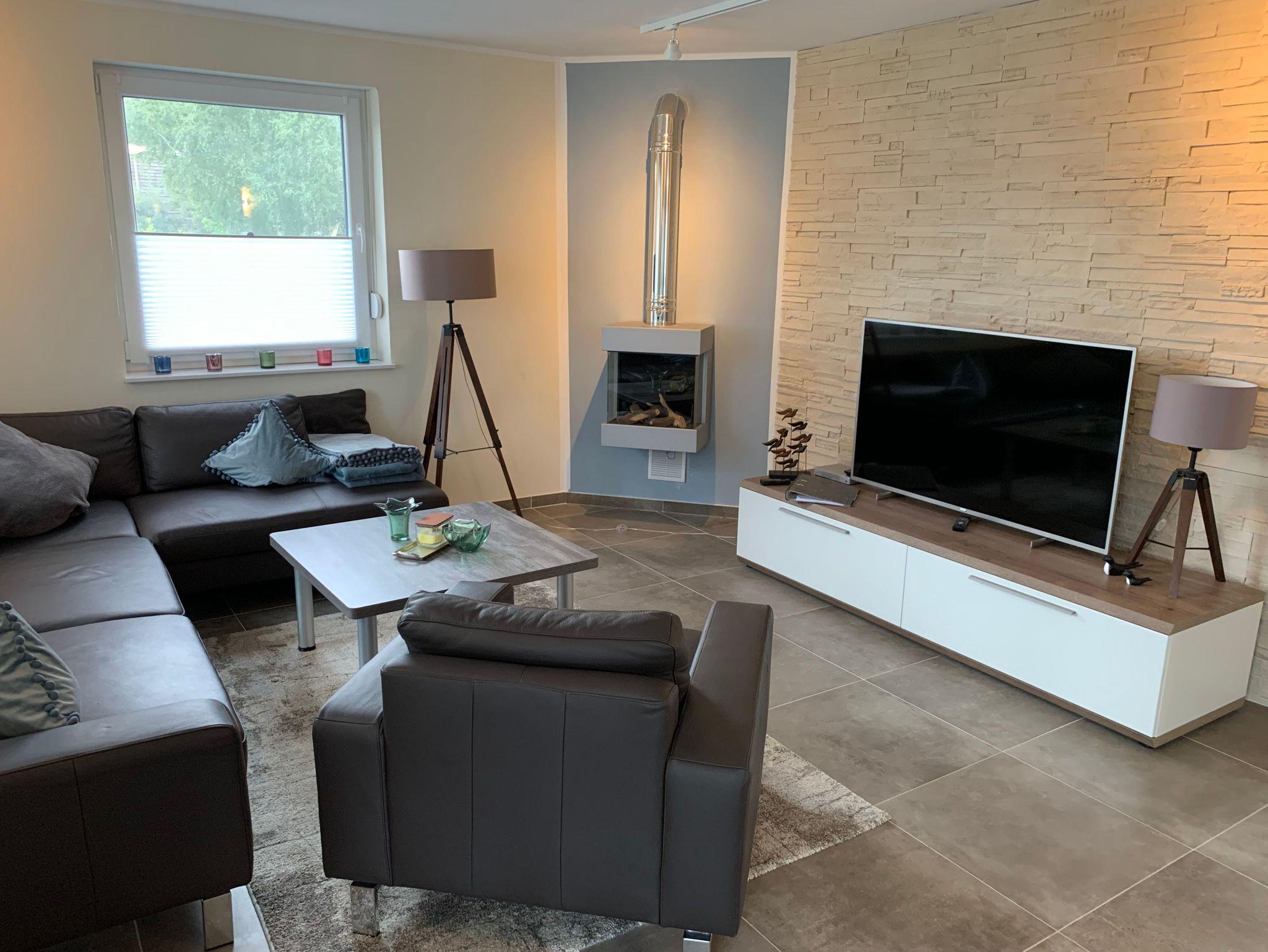 Lässig auf dem Sofa liegend, kann man komplett entspannen mit Musik oder TV und einem Gaskamin.