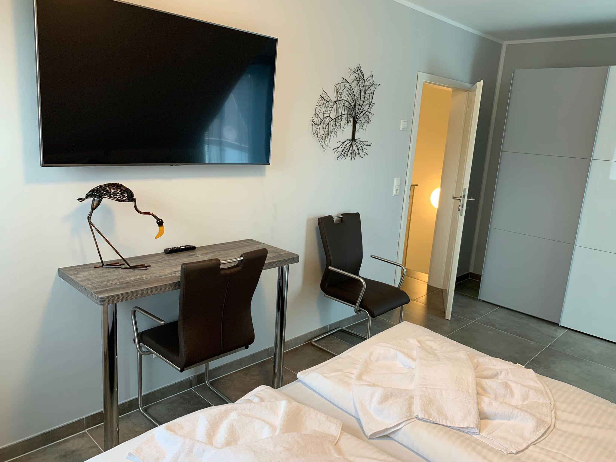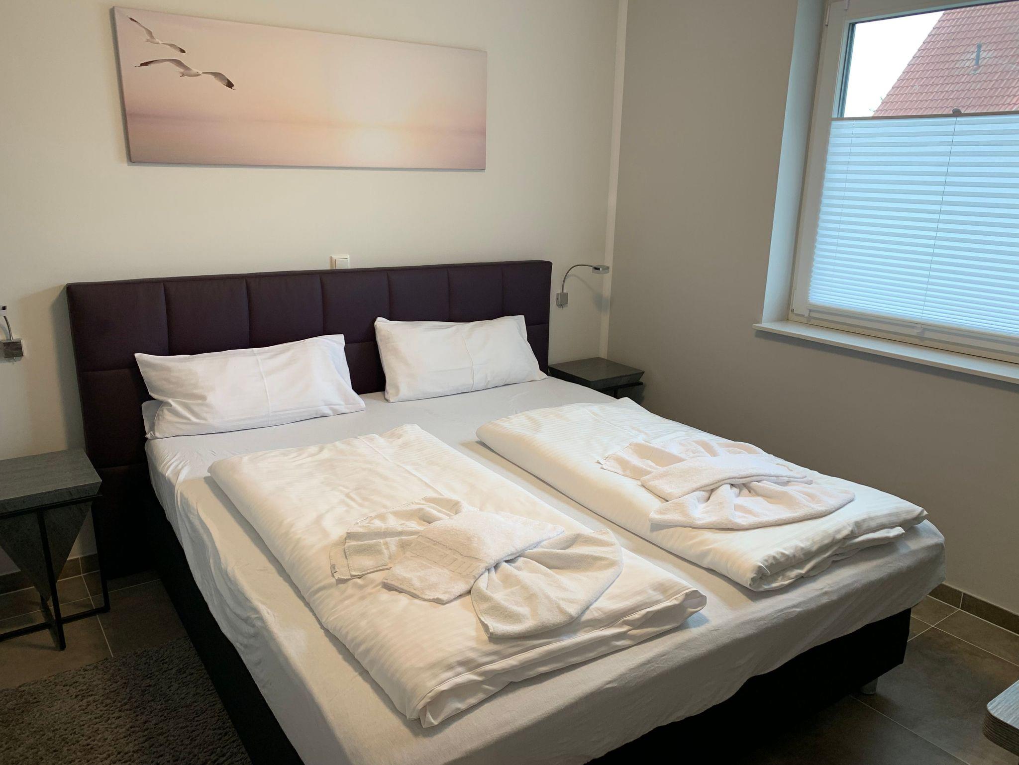 Die 3 Schlafzimmer verfügen ebenfalls alle über Flat-TV und sind jeweils mit 180 x 200 cm großen Boxspringbetten ausgestattet.