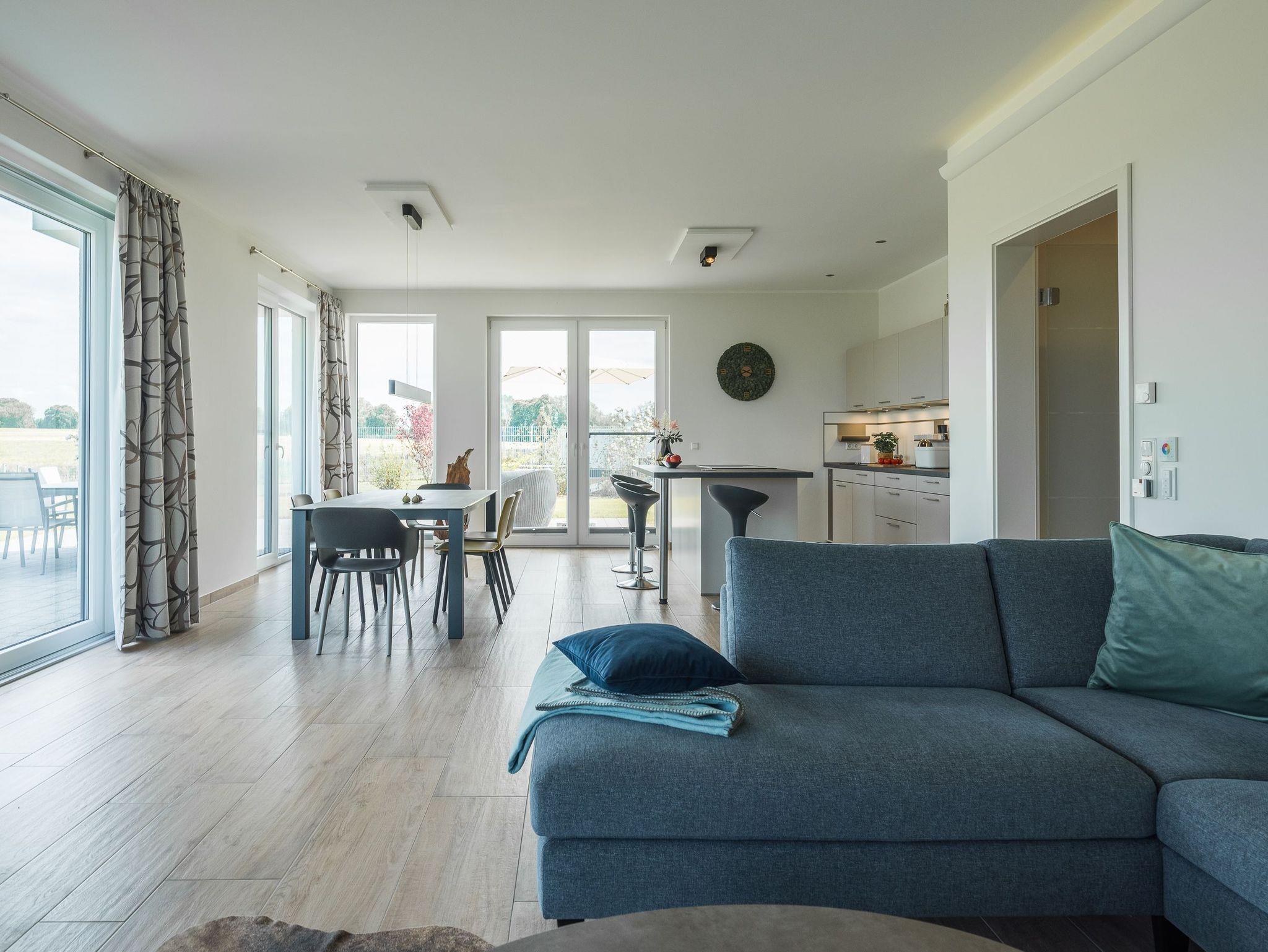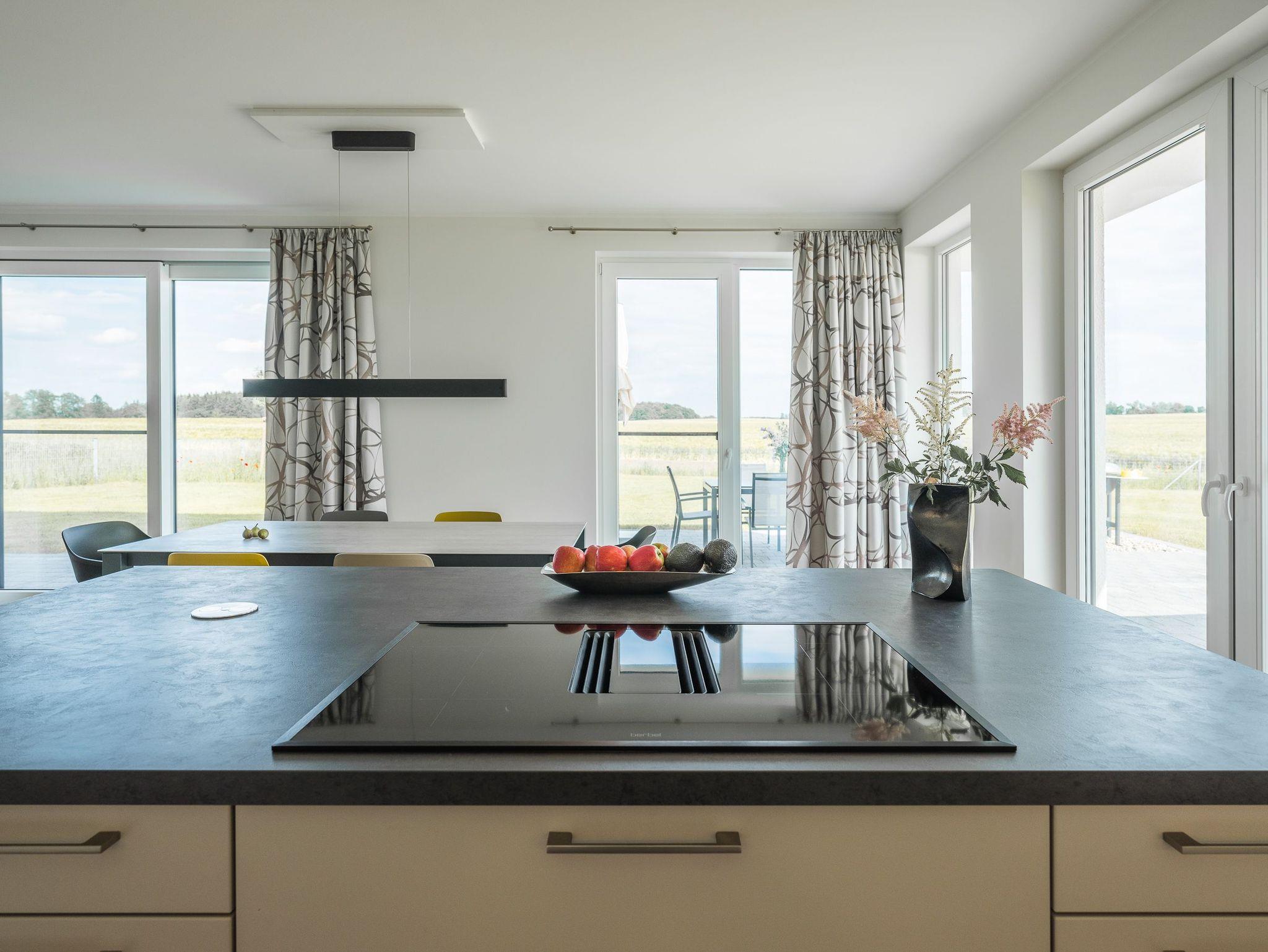 Mit 3 Schlafzimmern und 2 Bädern, sowie 2 zusätzlichen Gäste-WCs, bietet das Haus ausreichend Platz. Die modern offene Wohnküche ist der ideale Ort, um sich kulinarisch auszutoben und dabei das Gespräch mit Familie und Freunden zu genießen. Die Sauna ist ein weiteres Highlight dieses Ferienhauses. Hier können Sie sich bei angenehmer Wärme entspannen und gleichzeitig den Blick auf die idyllische Landschaft genießen. Dieses Ferienhaus bietet Ihnen eine perfekte Kombination aus modernem Komfort und naturnaher Umgebung.
