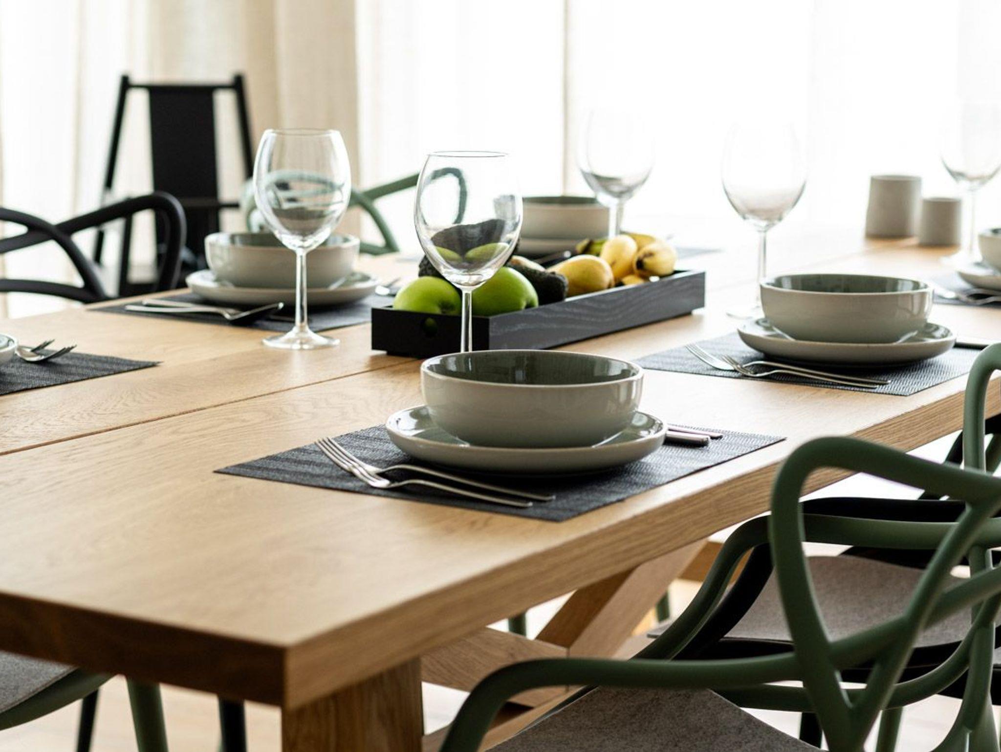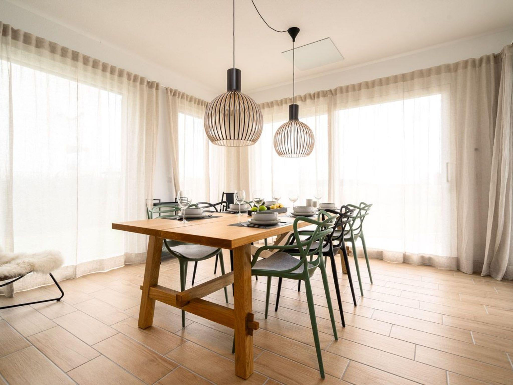 Die Villa Soma bietet auf 166m² luxuriöse Wohnfläche und beeindruckt durch ihre durchdachte Raumaufteilung und hochwertige Ausstattung. Die offene Küche mit Kücheninsel ist perfekt für Kochbegeisterte und lädt zu geselligen Kochabenden ein. Der angrenzende offene Wohn- und Essbereich mit Kamin sorgt für gemütliche Atmosphäre.