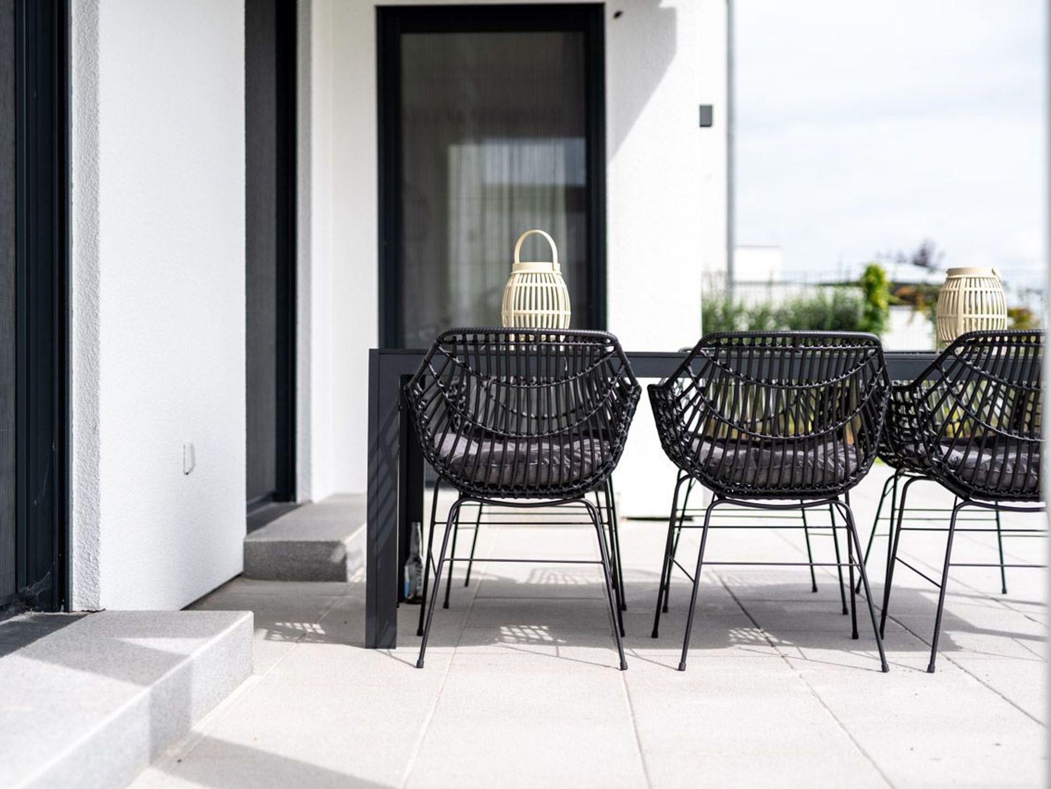 Die großzügige Terrasse ist mit Gartenmöbeln, Sonnenliegen und einem Holzkohlegrill ausgestattet, perfekt für sonnige Tage und gesellige Abende im Freien. Der eigene beheizte Whirlpool rundet das luxuriöse Angebot ab und bietet Entspannung pur.