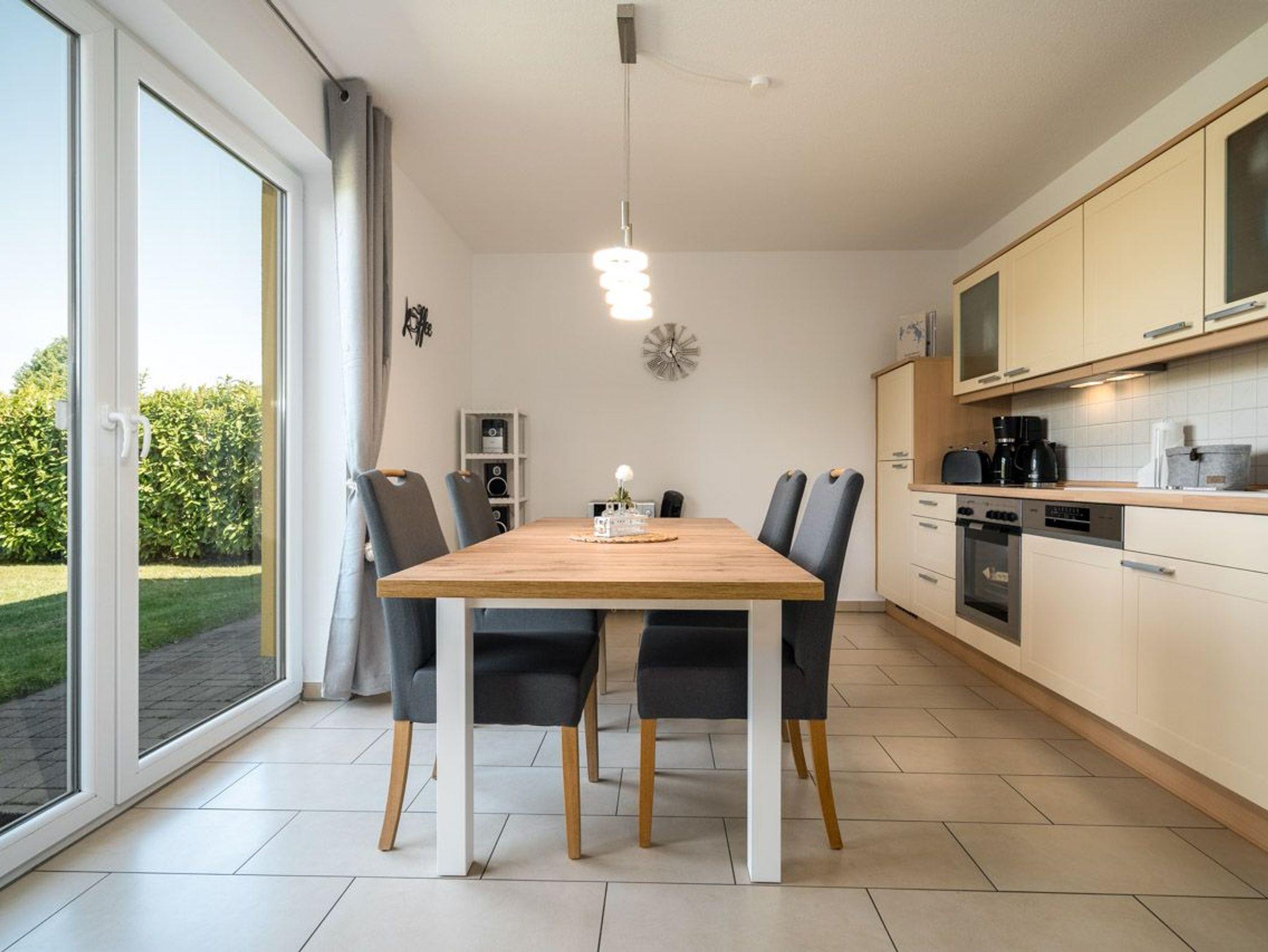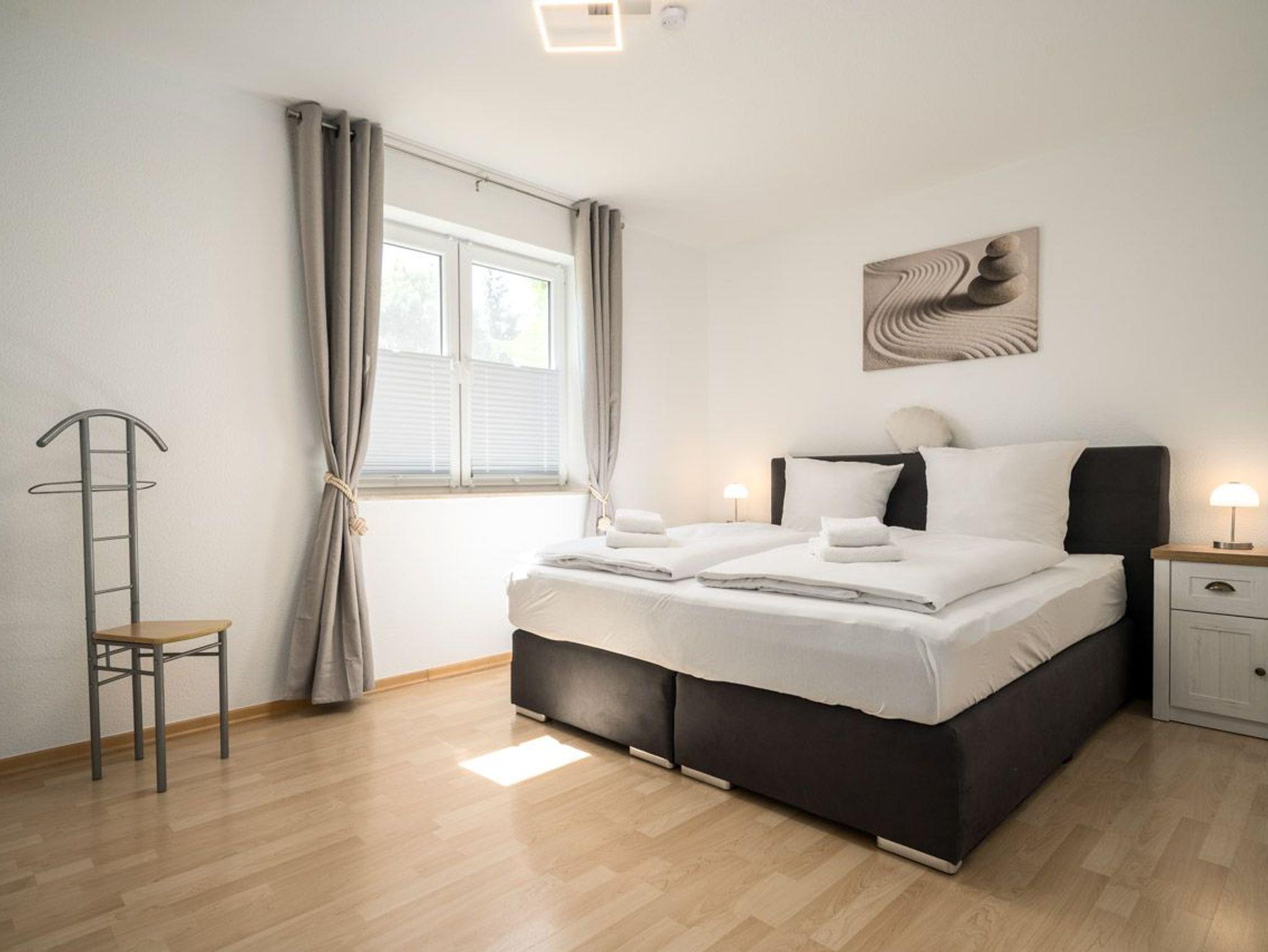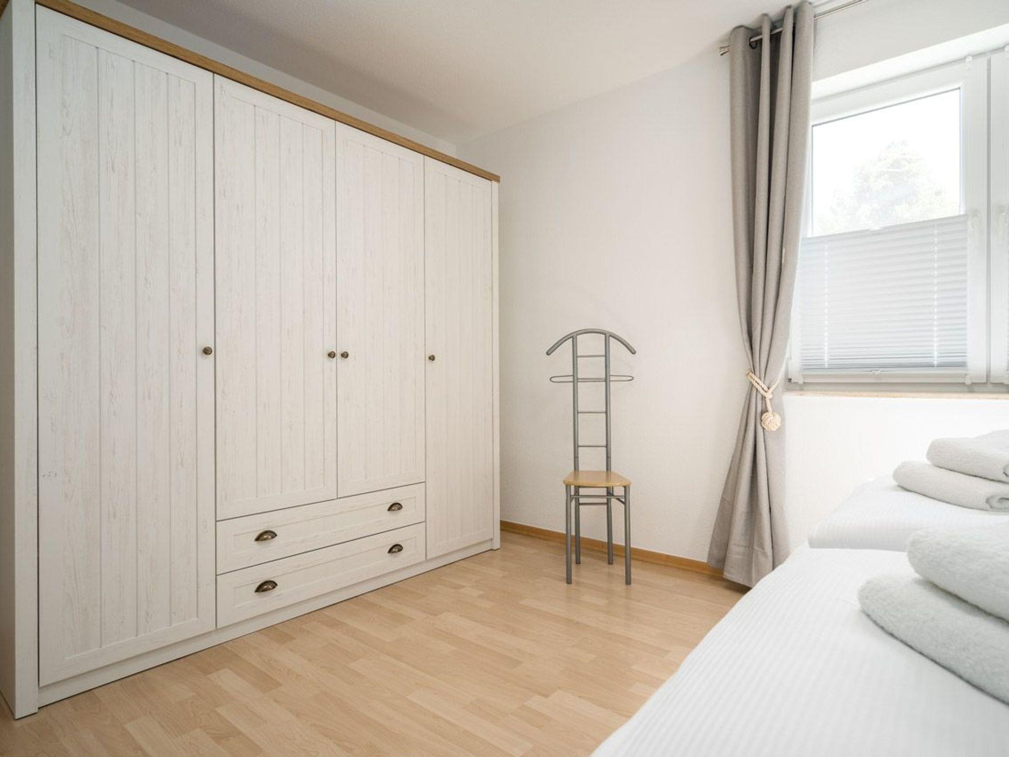 Diese geräumige Wohnung bietet Platz für bis zu 4 Personen und verfügt über zwei Schlafzimmer, jeweils mit einem komfortablen Doppelbett und großzügigen Kleiderschränken für Ihre persönlichen Sachen. Das Badezimmer ist mit einer Dusche und einer Sauna ausgestattet, was für zusätzlichen Komfort und Entspannung sorgt. Ein zusätzliches Gäste-WC ist ebenfalls vorhanden. Der offene Wohn- und Essbereich mit integrierter Küche schafft eine einladende Atmosphäre. Hier können Sie gemeinsam essen, entspannen und schöne Stunden verbringen.