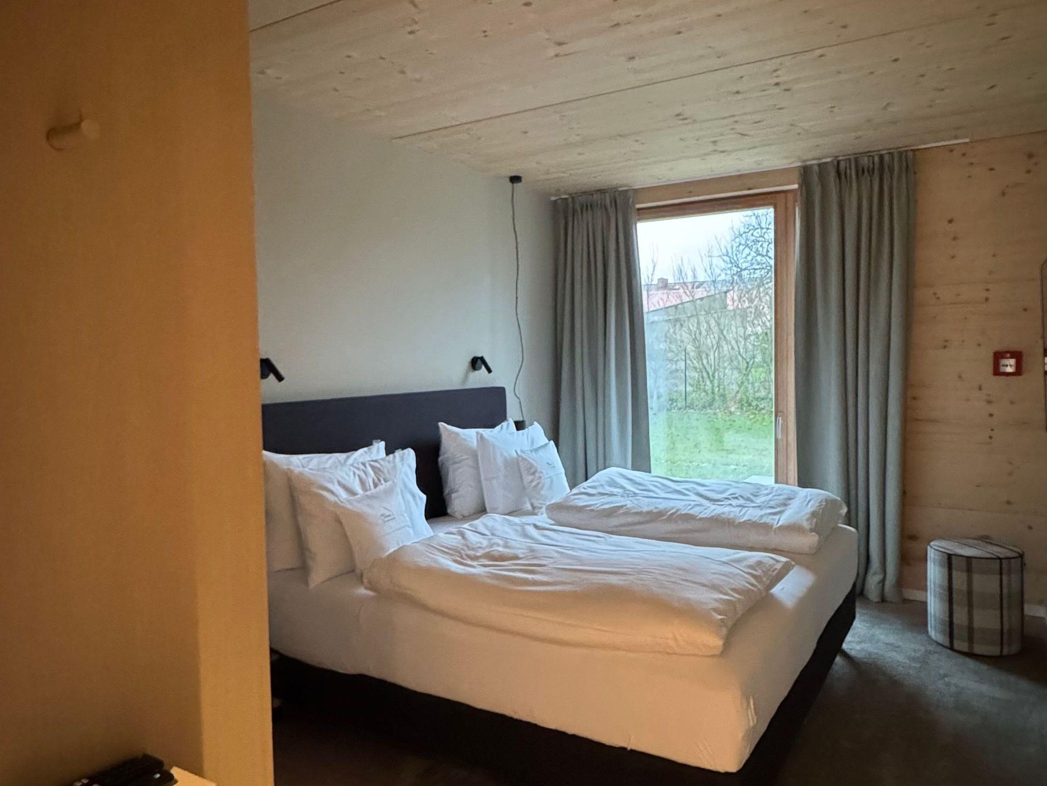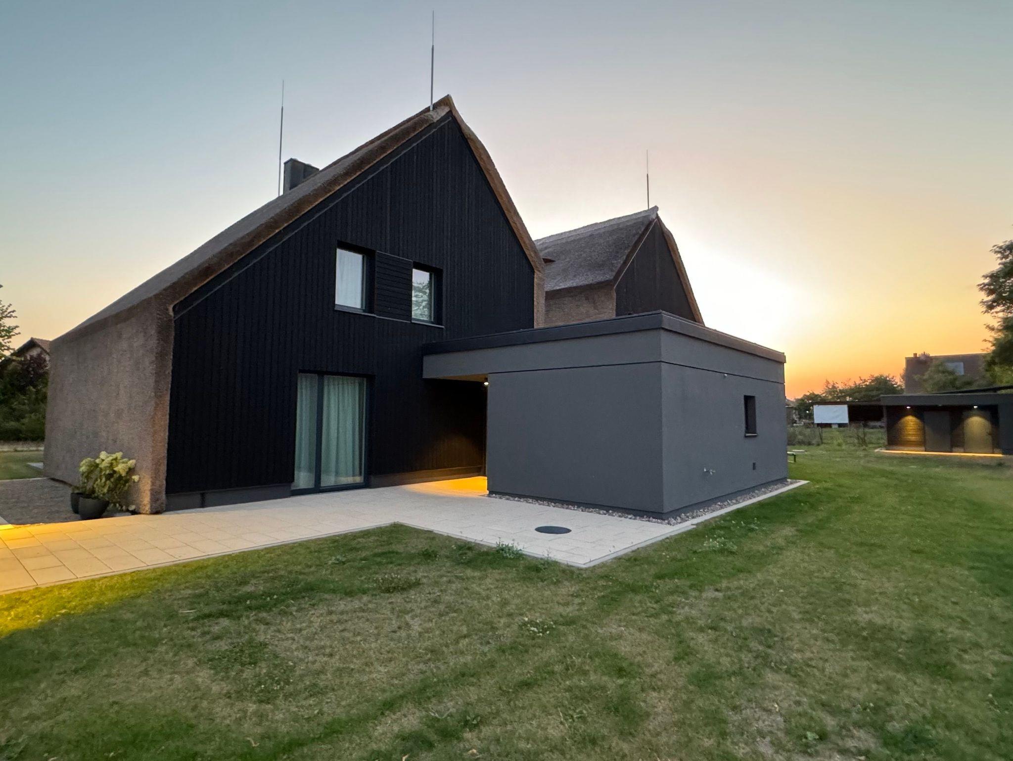 Durch ihre Holzbauweise vereint die ReetLodge ein sehr besonderes Wohnklima mit höchstem Komfort. Unsere drei flexibel kombinierbaren Suiten (801, 802 & 803), die sich jeweils auf zwei Etagen erstrecken, bieten Platz für bis zu 18 Personen. Die ReetLodge kann gesamt oder jede Suite kann einzeln gebucht werden und ist ideal für Freunde, Familien, Firmen oder Interessengruppen. Genießen Sie eine Auszeit oder verlegen Sie Ihr Home Office in die ReetLodge. Gemeinsam nutzbar ist der zubuchbare, lichtdurchflutete Lounge-Bereich mit voll ausgestatteter Küche und einem Kamin (150 Euro/Nacht). Dieser Bereich ist perfekt zum gemeinsamen Kochen, Entspannen oder Arbeiten. Für jede Suite stehen Parkplätze und jeweils ein Abstellraum für beispielsweise Fahrräder oder Golfgepäck zur Verfügung. Zusätzlich kann eine Elektoladestation kann gegen Aufpreis genutzt werden.