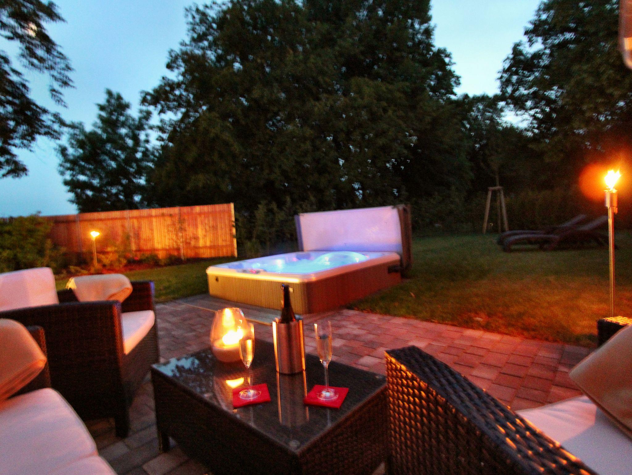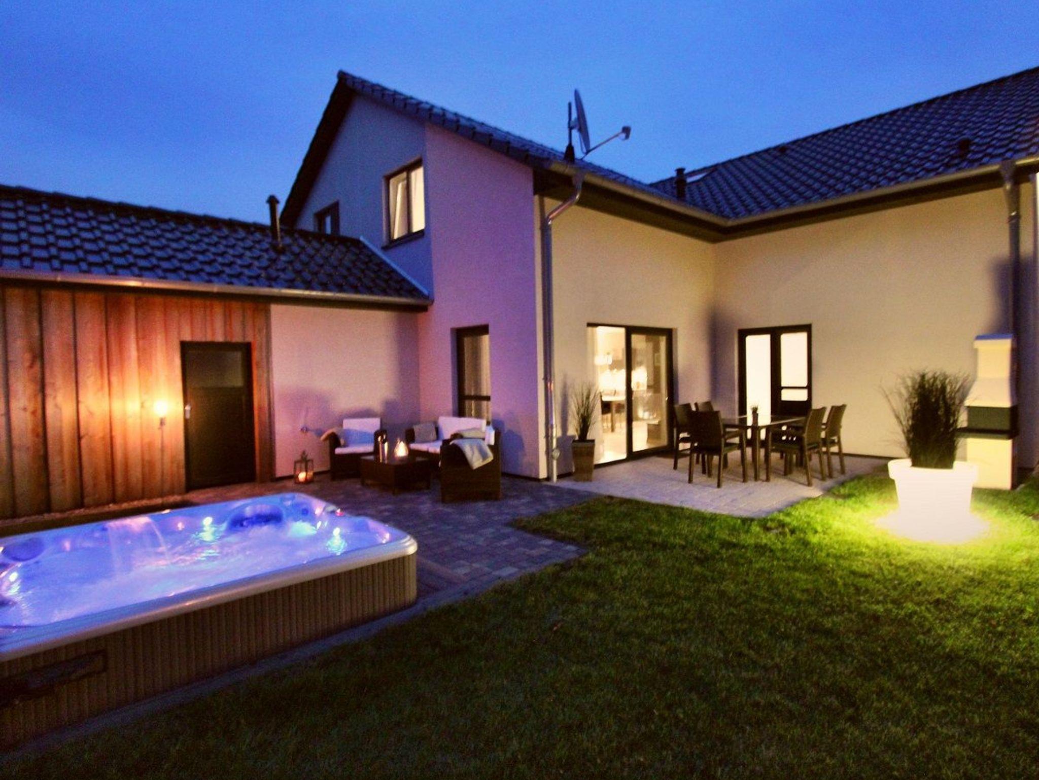 Traumhaftes Doppelhaus mit großem Garten, Außen Whirlpool und Sauna.