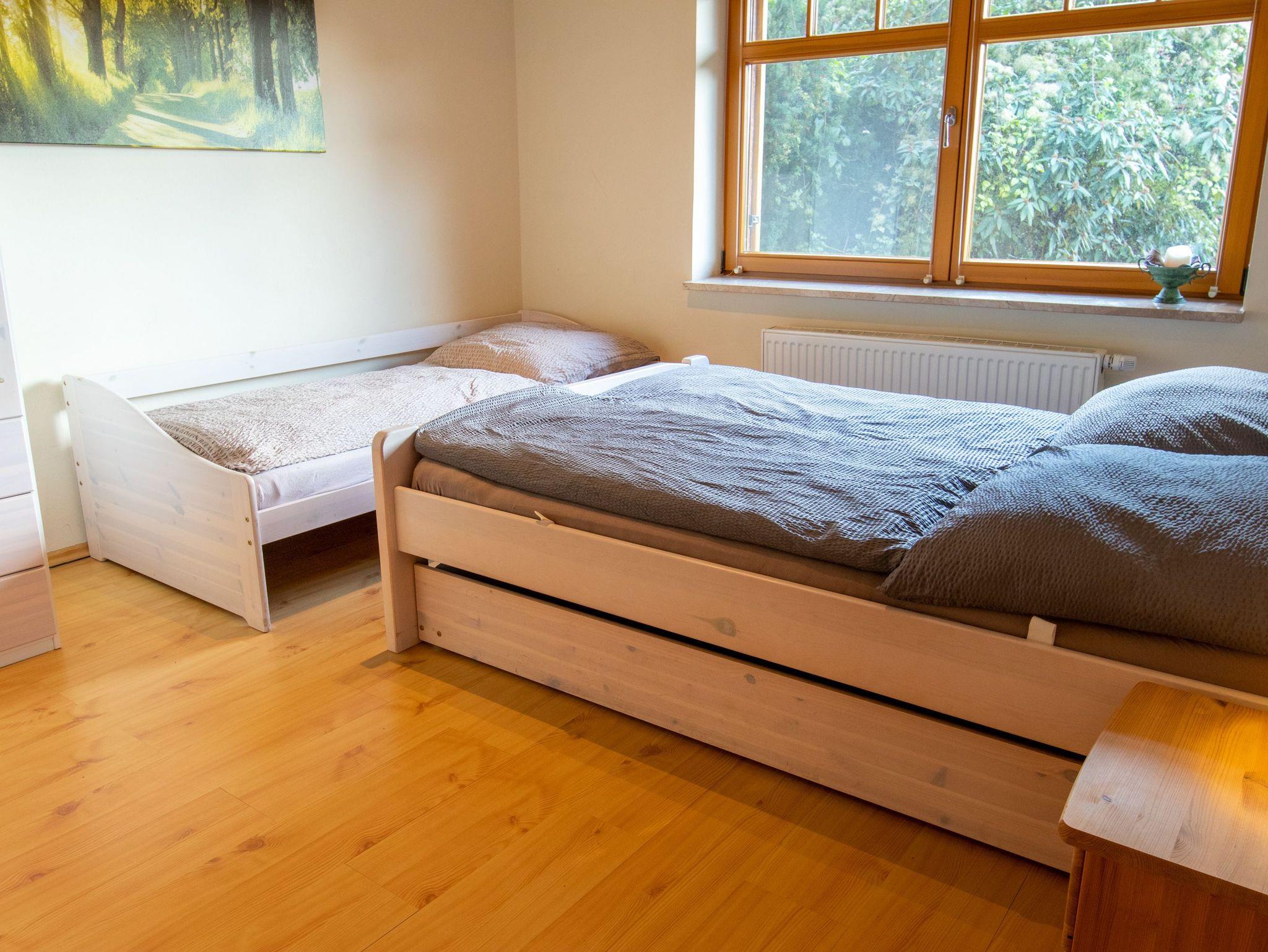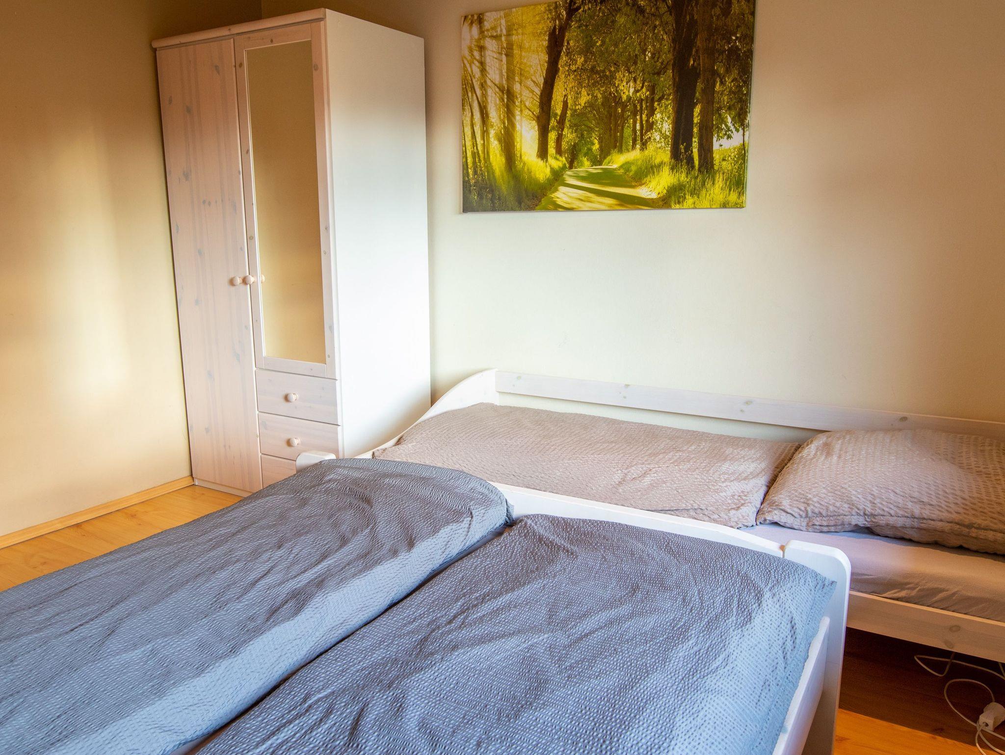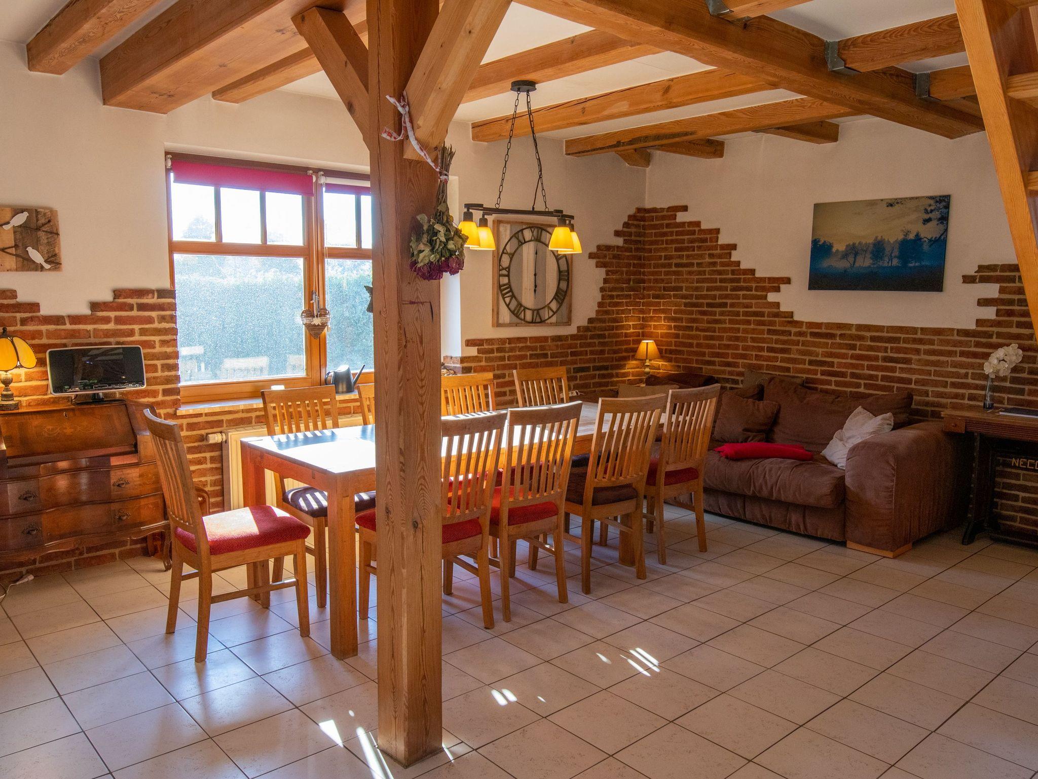 Das Ferienhaus bietet auf 180m² und 2 Etagen reichlich Platz für große Familien und Freundesgruppen - gemeinsam kochen, essen und spielen. Rückzugsmöglichkeiten laden zum Kuscheln, Lesen oder einfach zum Träumen und Genießen ein. Es gibt insgesamt 3 Schlafzimmer und 2 Bäder (eines mit Dusche und eines mit großer Badewanne). Das große Wohnzimmer mit offener Küche besticht mit einem breiten Kühlschrank und einem Holzofenherd. Im oberen Bereich befinden sich weitere Sitzmöglichkeiten und ein Kamin.