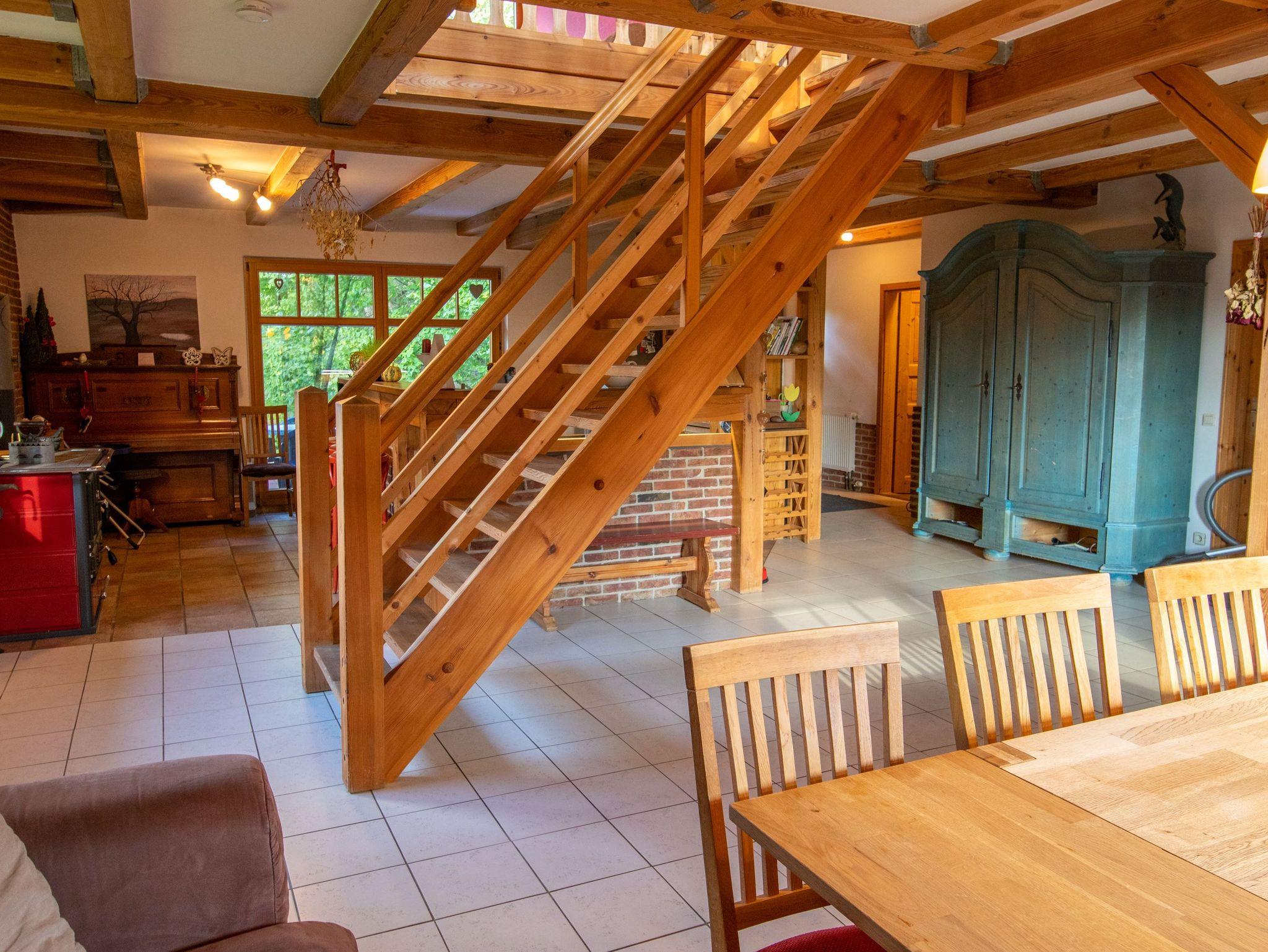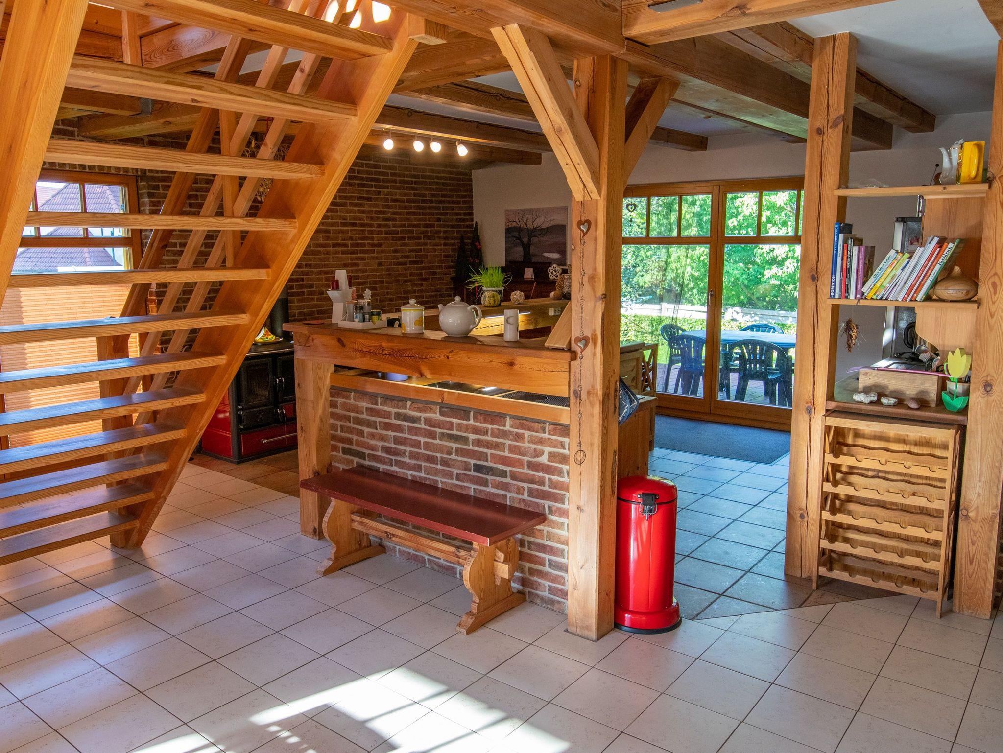 Das ca. 180 m² Ferienhaus ist komfortabel und liebevoll eingerichtet. Die untere Etage ist offen mit Blick in die obere Etage. In ihr befindet sich die große Wohnküche mit Couchecke (Liegefläche 180x200), Esstisch, Tresen und Holzofenherd. Natürlich gibt es auch einen ganz normalen Elektroherd, eine Kühl-Gefrierkombination, Spülmaschine und alles was man zum Kochen, Backen und Essen braucht. Ein Schlafzimmer mit Doppelbett (160x200) und einem Einzelbett (90x200) mit zusätzlichem Ausziehbett (bei ausgezogenem Bett ist dieses Zimmer sehr eng!) sowie ein Bad mit Dusche, Waschmaschine, Waschbecken und WC liegen ebenfalls in der unteren Etage.