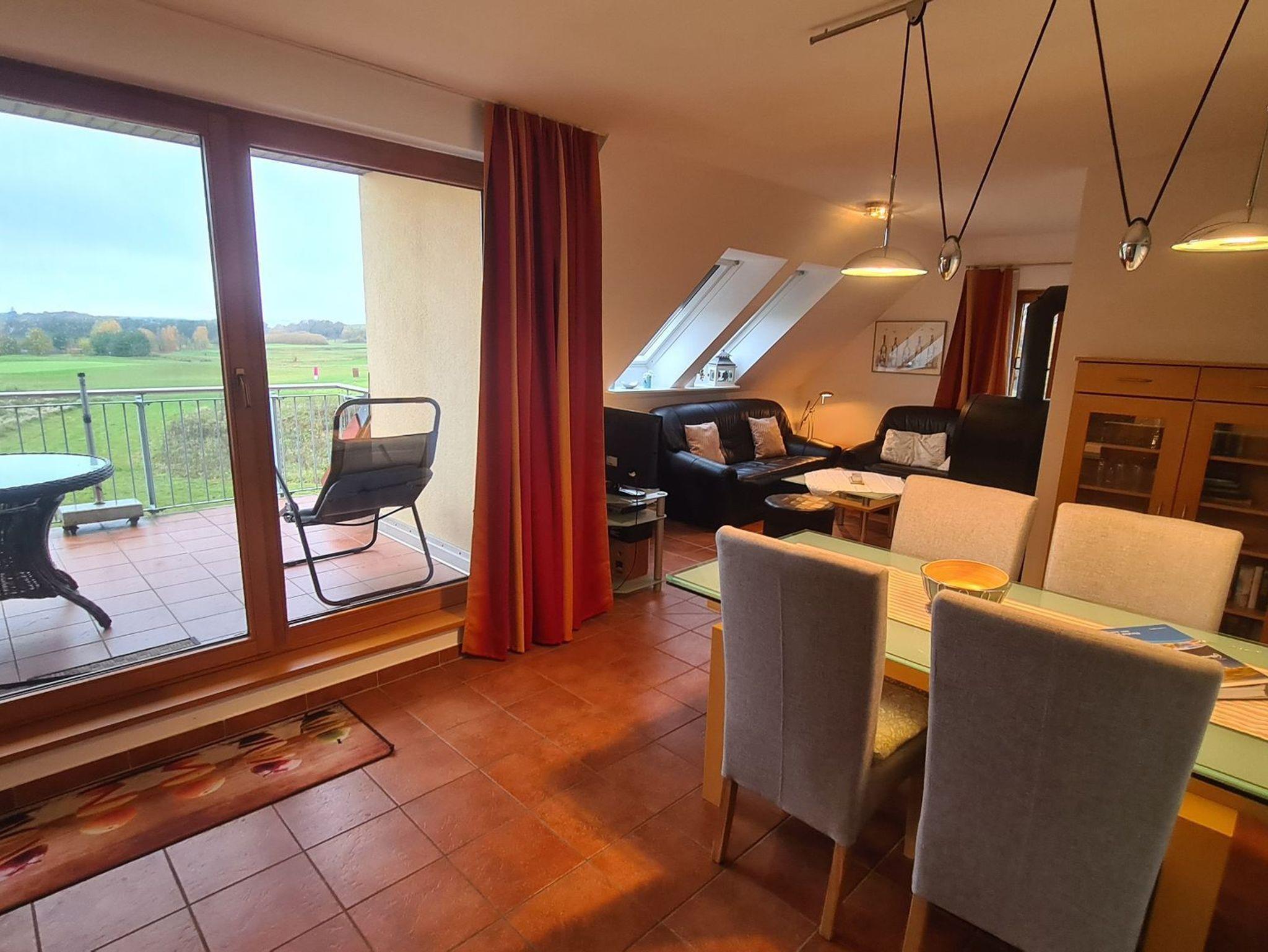Die geschmackvoll eingerichtete Ferienwohnung befindet sich im Haus Albatros in der 1. Etage rechts. Es gibt 2 seperate Schlafzimmer, eines verfügt über ein Doppelbett, das andere über 2 Einzelbetten. Von der großen möblierten Loggia haben sie einen weiten Blick in die Natur wo man Abends wunderschöne Sonnenuntergänge geniessen kann.
