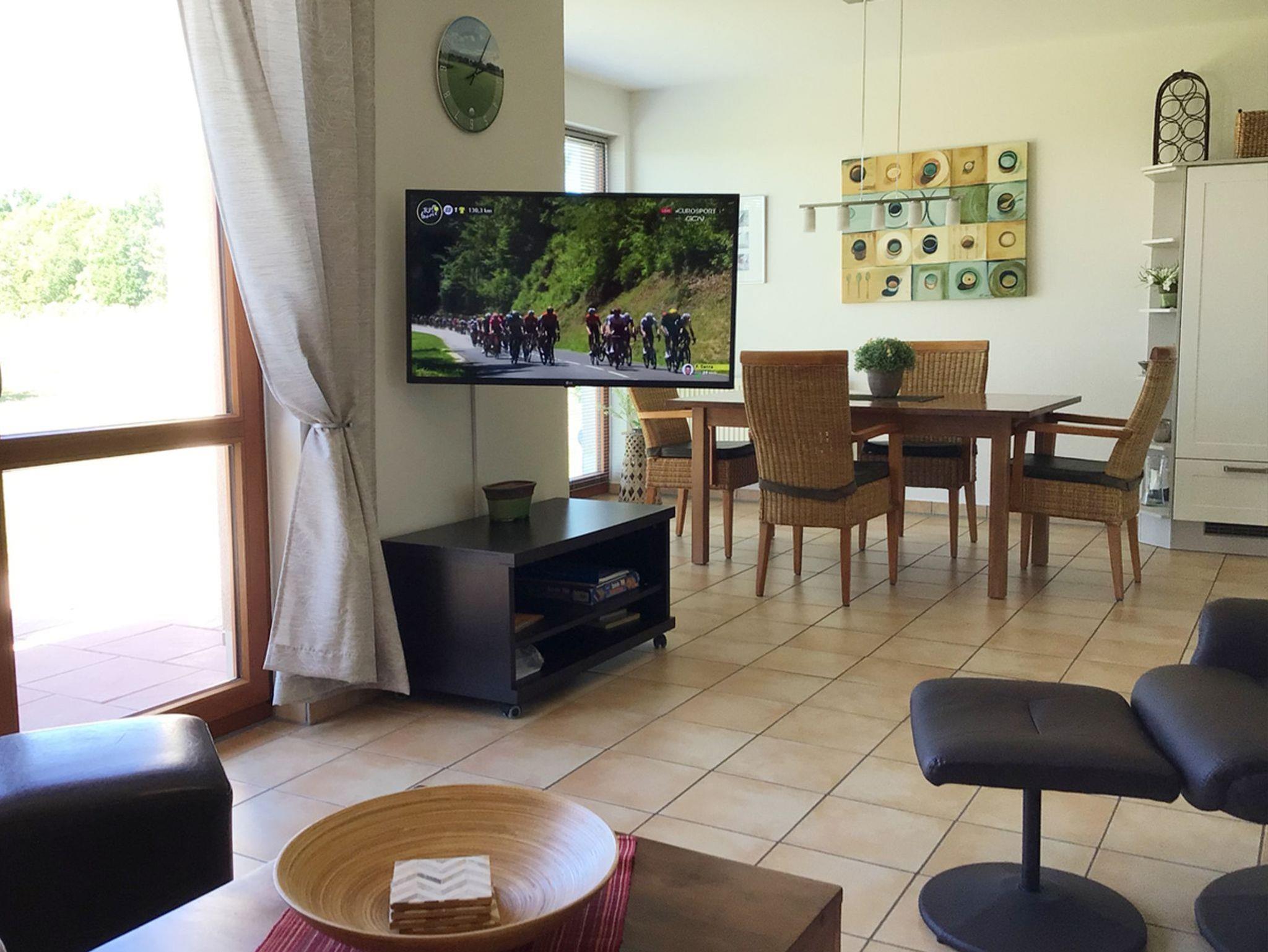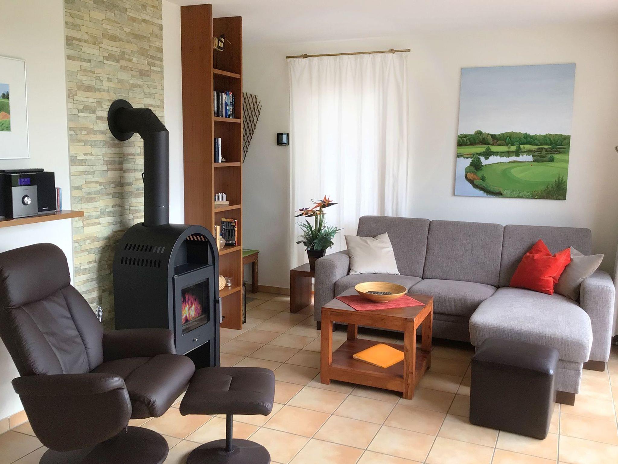 Diese helle, geschmackvoll eingerichtete Ferienwohnung befindet sich im Erdgeschoss links. Romantische Sonnenuntergänge mit einem wunderschönen Weitblick über den Golfplatz lassen auf der großen Sonnenterrasse ereignisreiche Urlaubstage entspannt ausklingen.