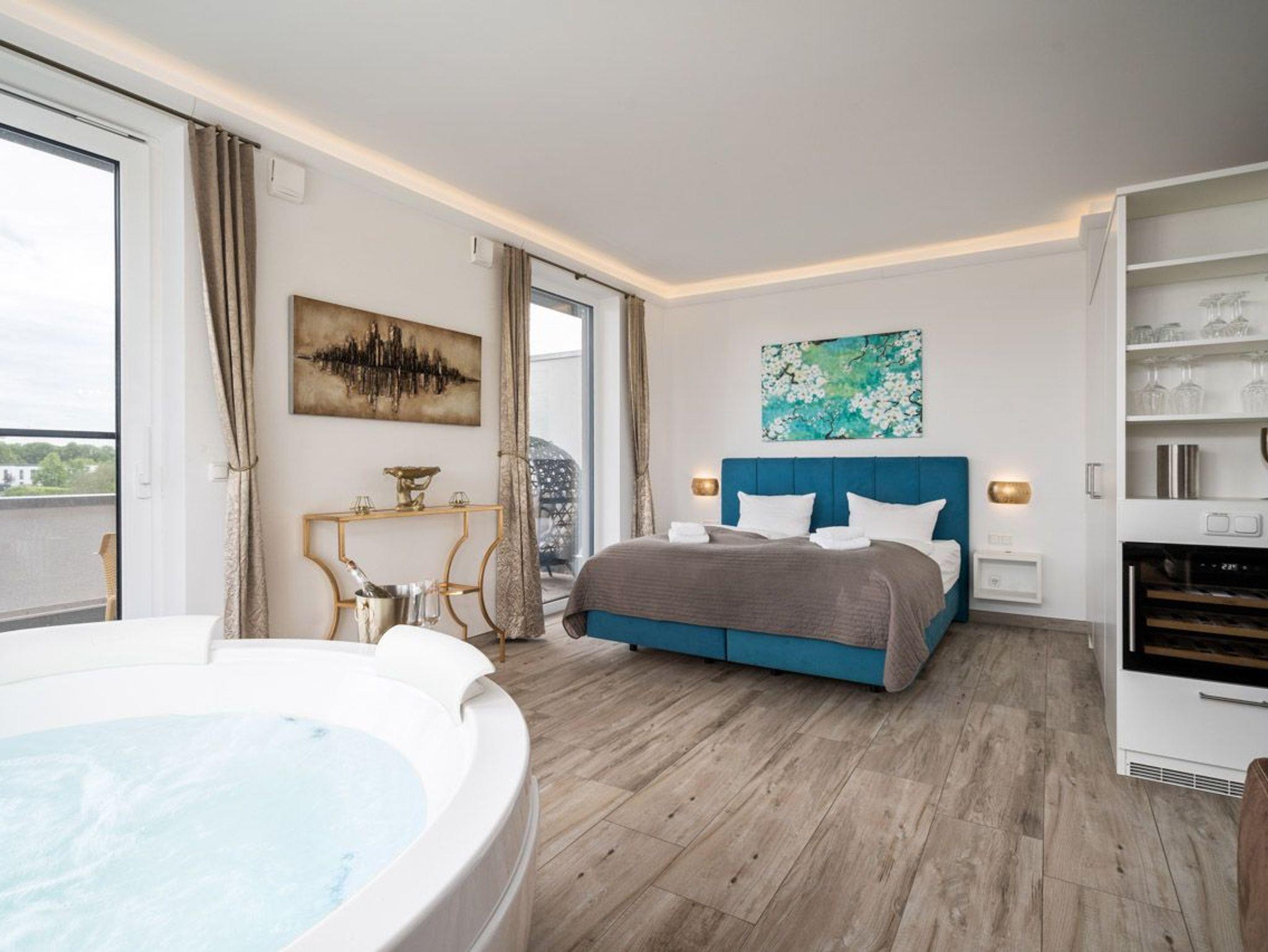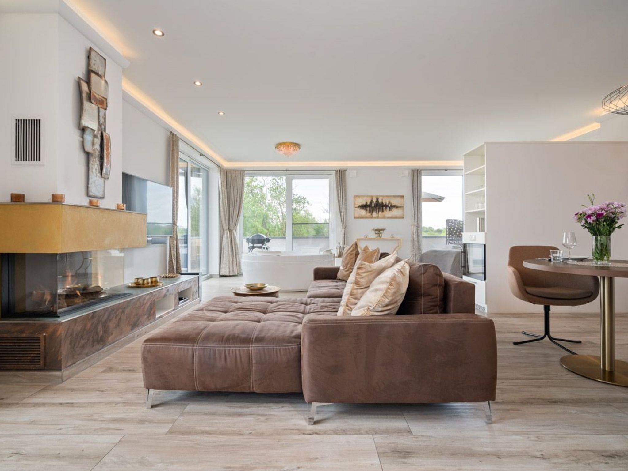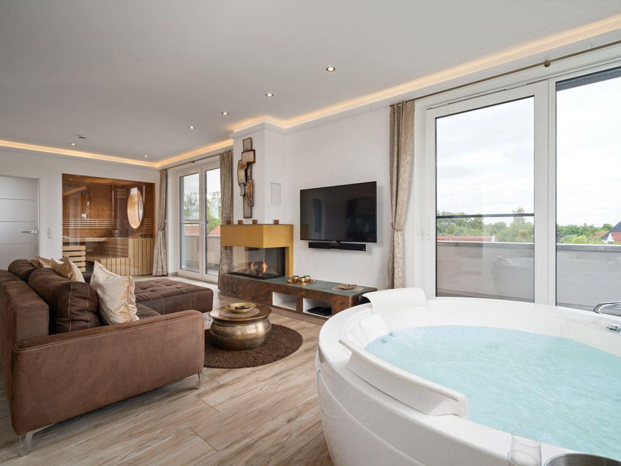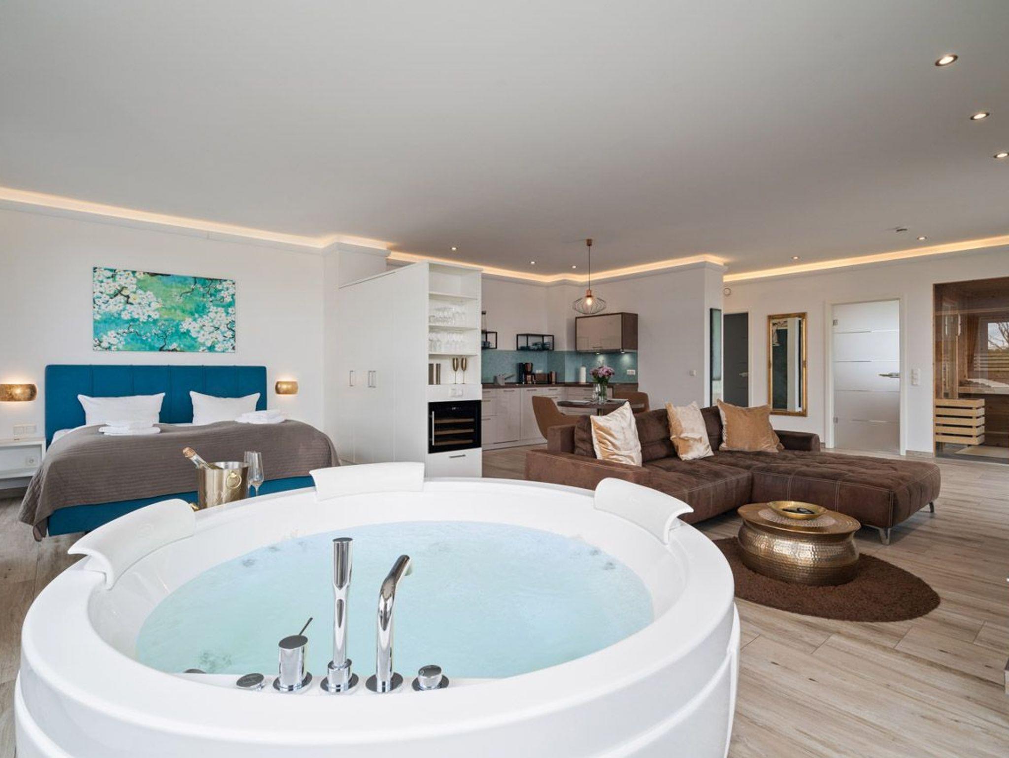 Die offene Gestaltung im Loft-Stil schafft ein modernes und großzügiges Ambiente. Der Schlafbereich ist harmonisch in das Loft integriert und lädt zum Träumen ein. Ein absolutes Highlight ist der beleuchtete Indoor Whirlpool, der Ihnen Entspannung pur verspricht. Tauchen Sie ein in das warme Wasser und lassen Sie sich von den sanften Lichtern verwöhnen. Die verglaste Sauna lädt dazu ein, den Alltagsstress abzuschütteln. Der offene Wohn- und Essbereich ist ein Ort der Gemütlichkeit. Der Gas Kamin sorgt für eine behagliche Atmosphäre und lädt zu romantischen Abenden ein. Die vollausgestattete Küche ermöglicht es Ihnen, kulinarische Köstlichkeiten gemeinsam zu genießen.