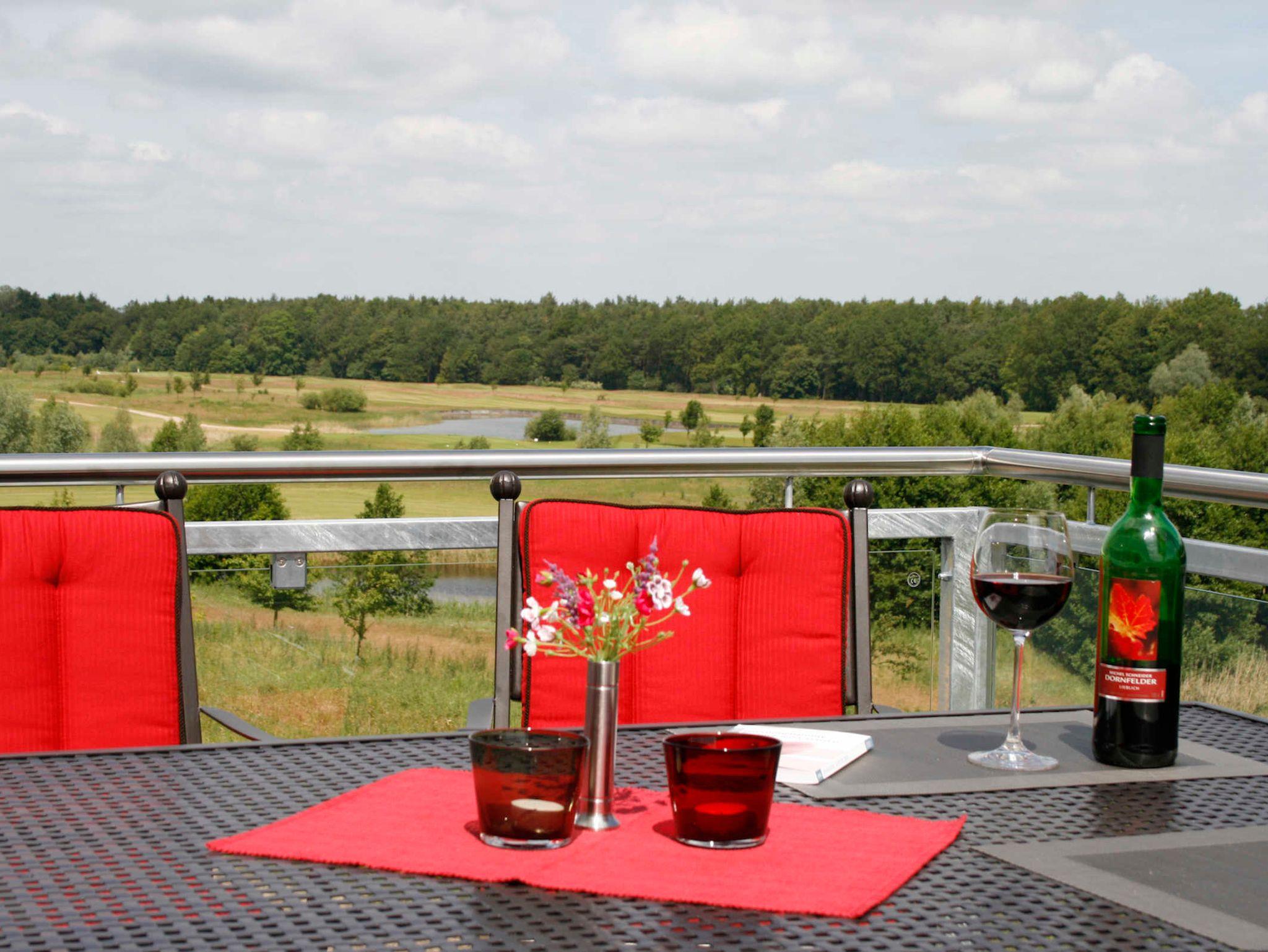 Vom Wohnzimmer aus haben Sie einen herrlichen Blick direkt auf den Schloß-Course der Golfanlage Fleesensee. Auf dem großen Balkon können Sie die Tage unter dem Sonnenschirm geniessen und am Abend den Sonnenuntergang beobachten. Für ein leckeres Barbeque steht ein Grill für Sie bereit.