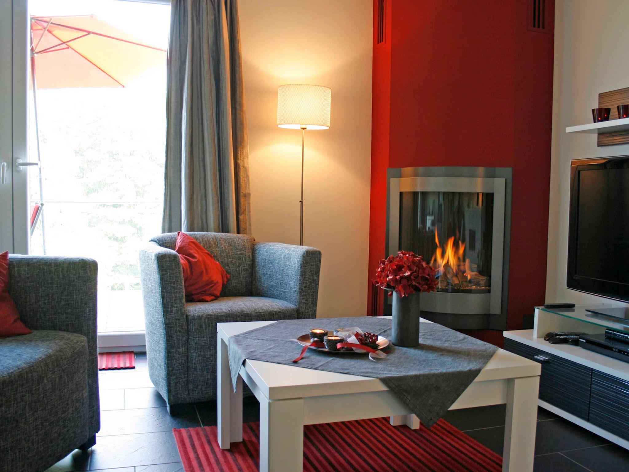 Der moderne Wohnbereich verfügt neben einer Couch mit 2 Sesseln über einen LCD TV, eine Heimkinoanlage mit DVD/CD-Spieler und einen Kamin, vor dem Sie es sich an kalten Tagen gemütlich machen können.